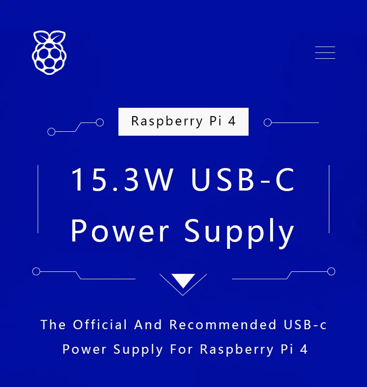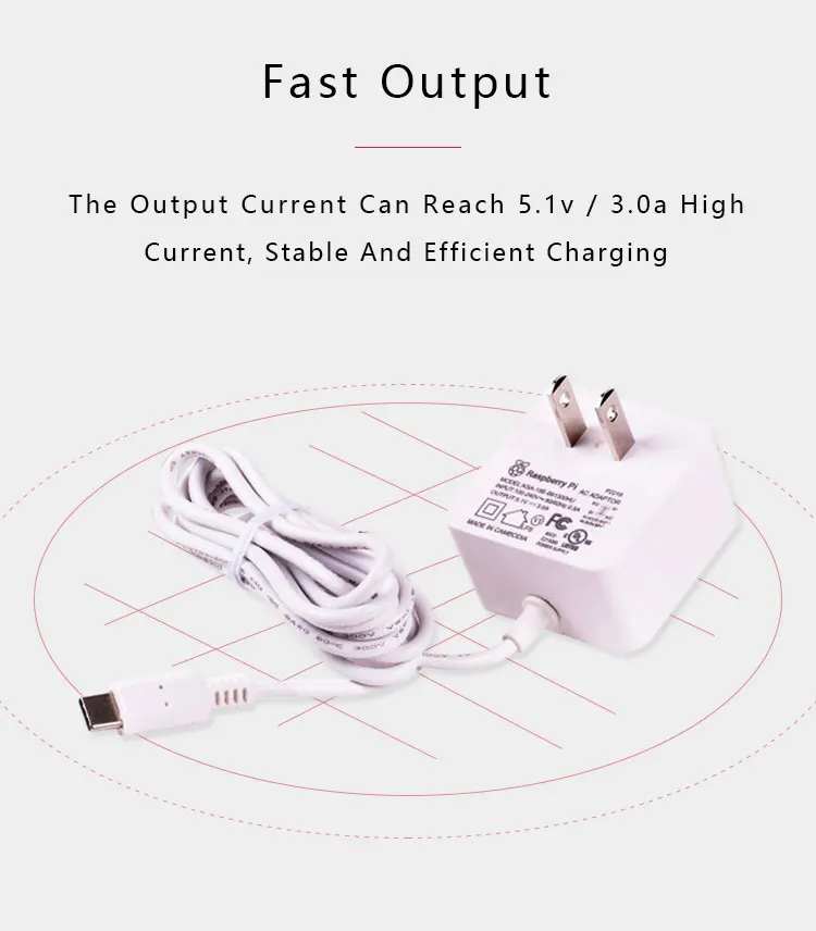 Raspberry Pi 4 15,3 Вт USB-C источник питания официальный и рекомендуемый адаптер Type-C для Pi4B