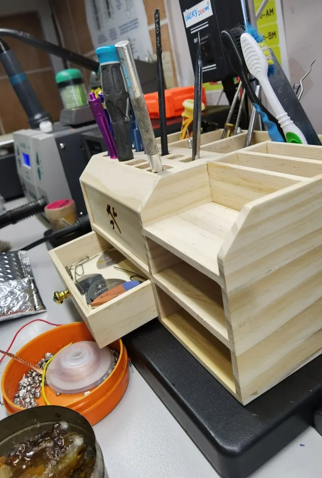 Деревянный многофункциональный ящик для хранения, передвижная стойка для сервисного стола, отвертка, залог держатель пинцета деталей инструмента