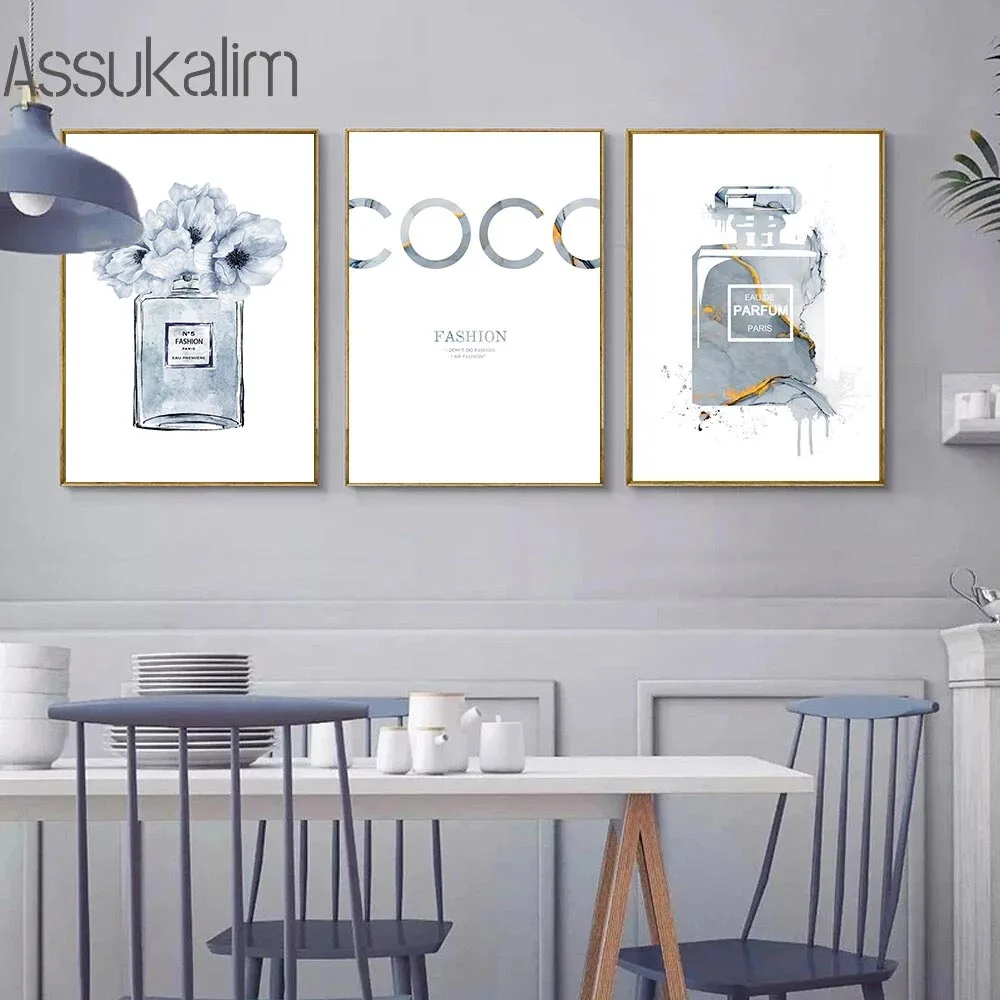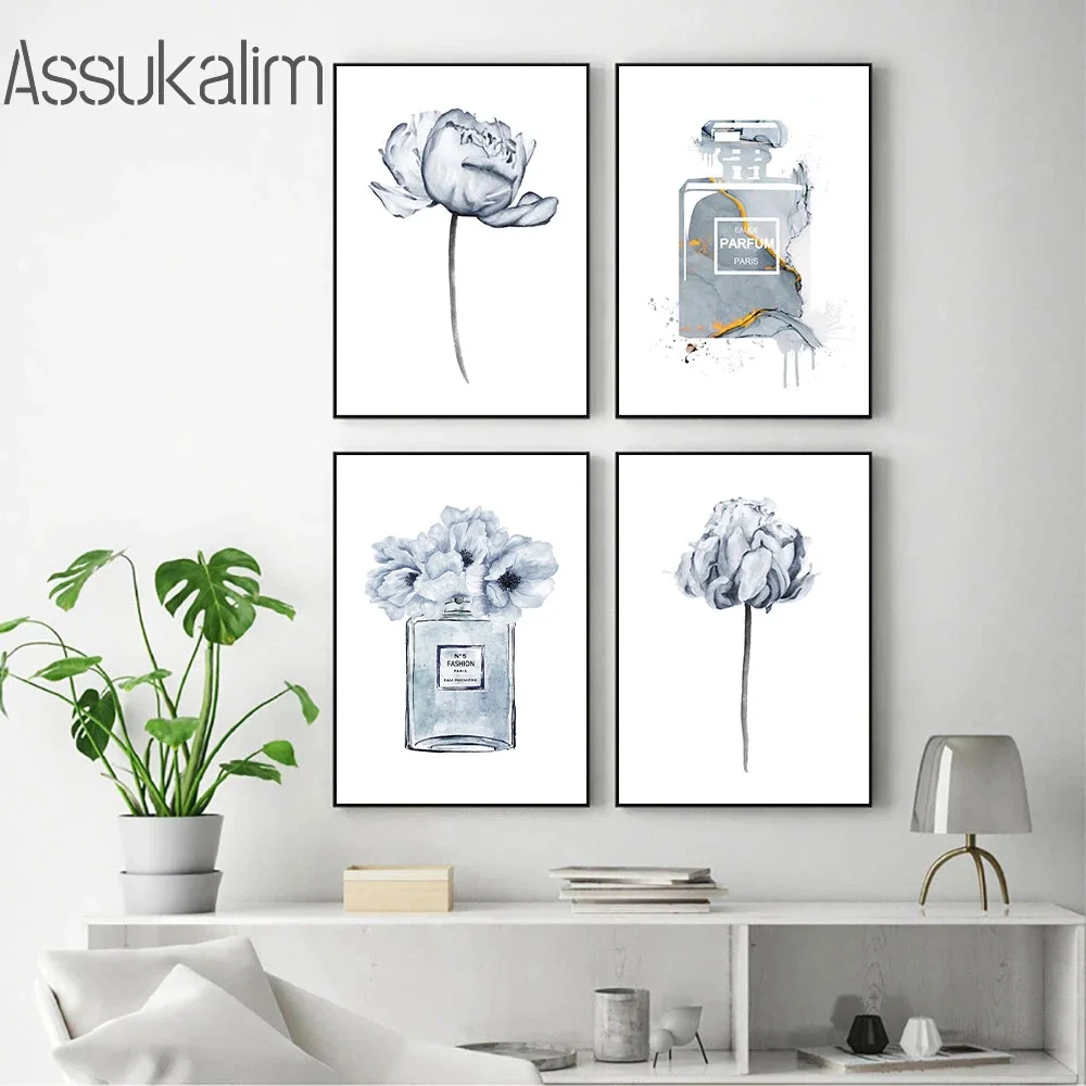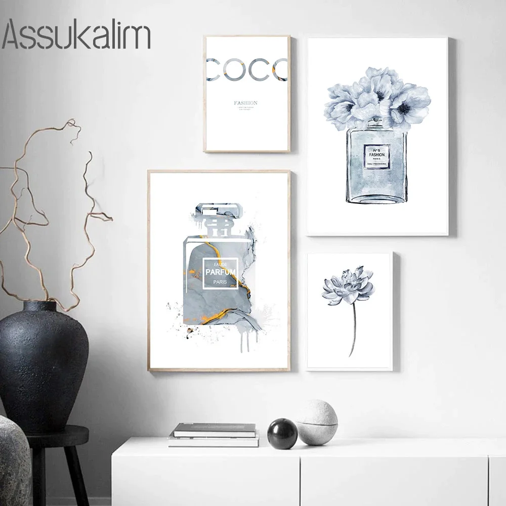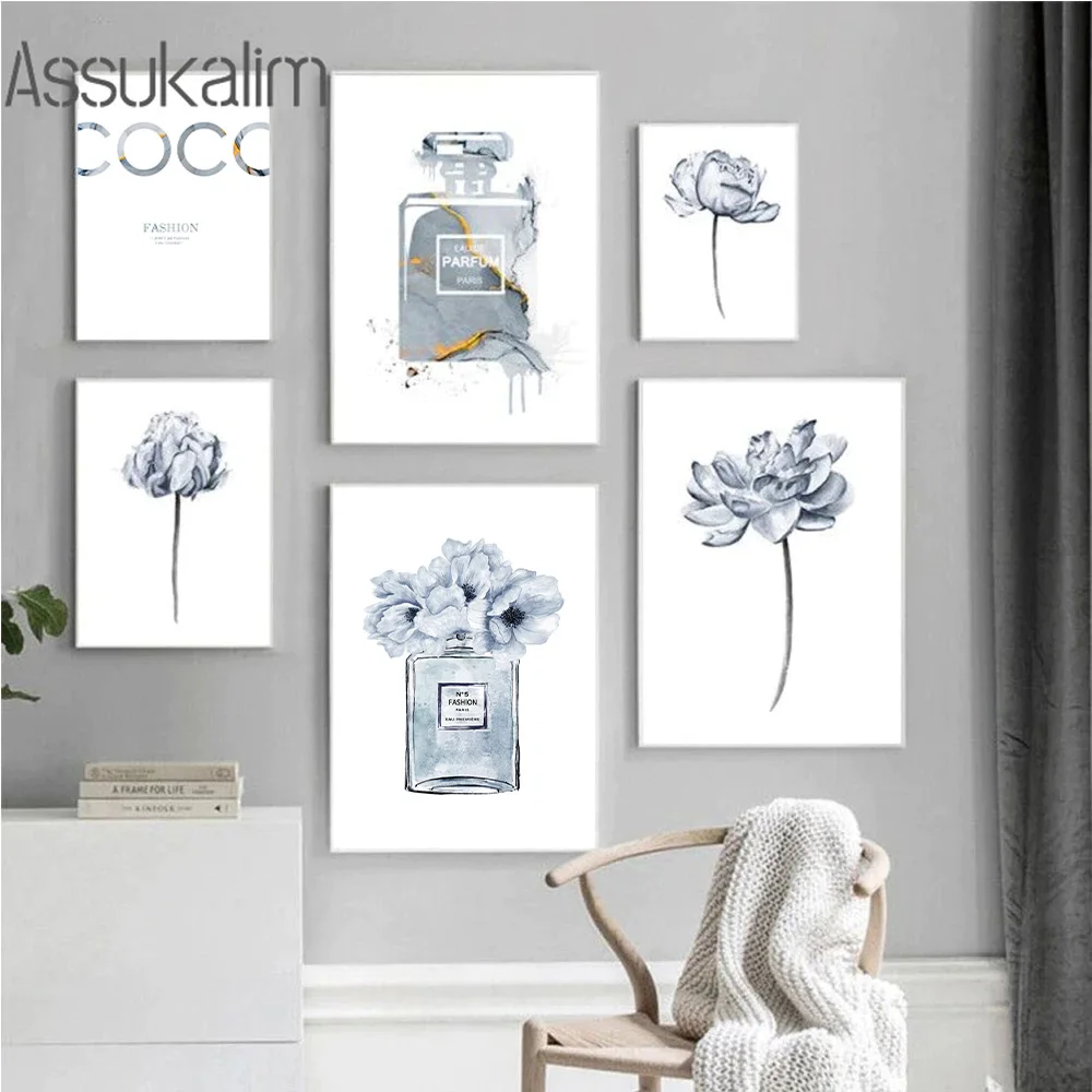 Модный настенный постер с флаконом духов, художественная живопись, ...