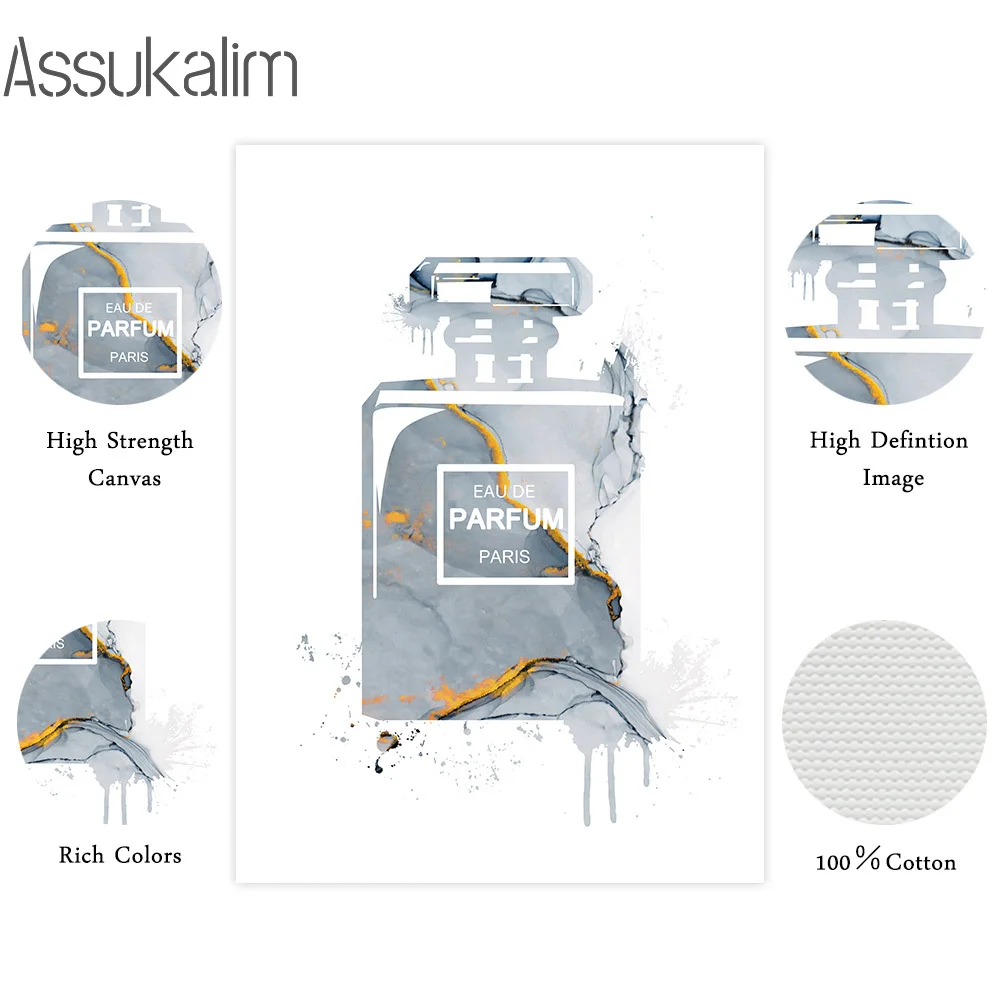 Модная настенная Картина на холсте, постер с флаконом духов, принты...