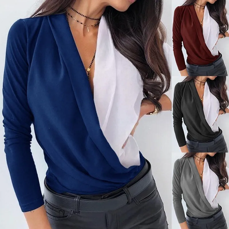 Осенне-зимняя пикантная женская блузка с глубоким V-образным вырезо...
