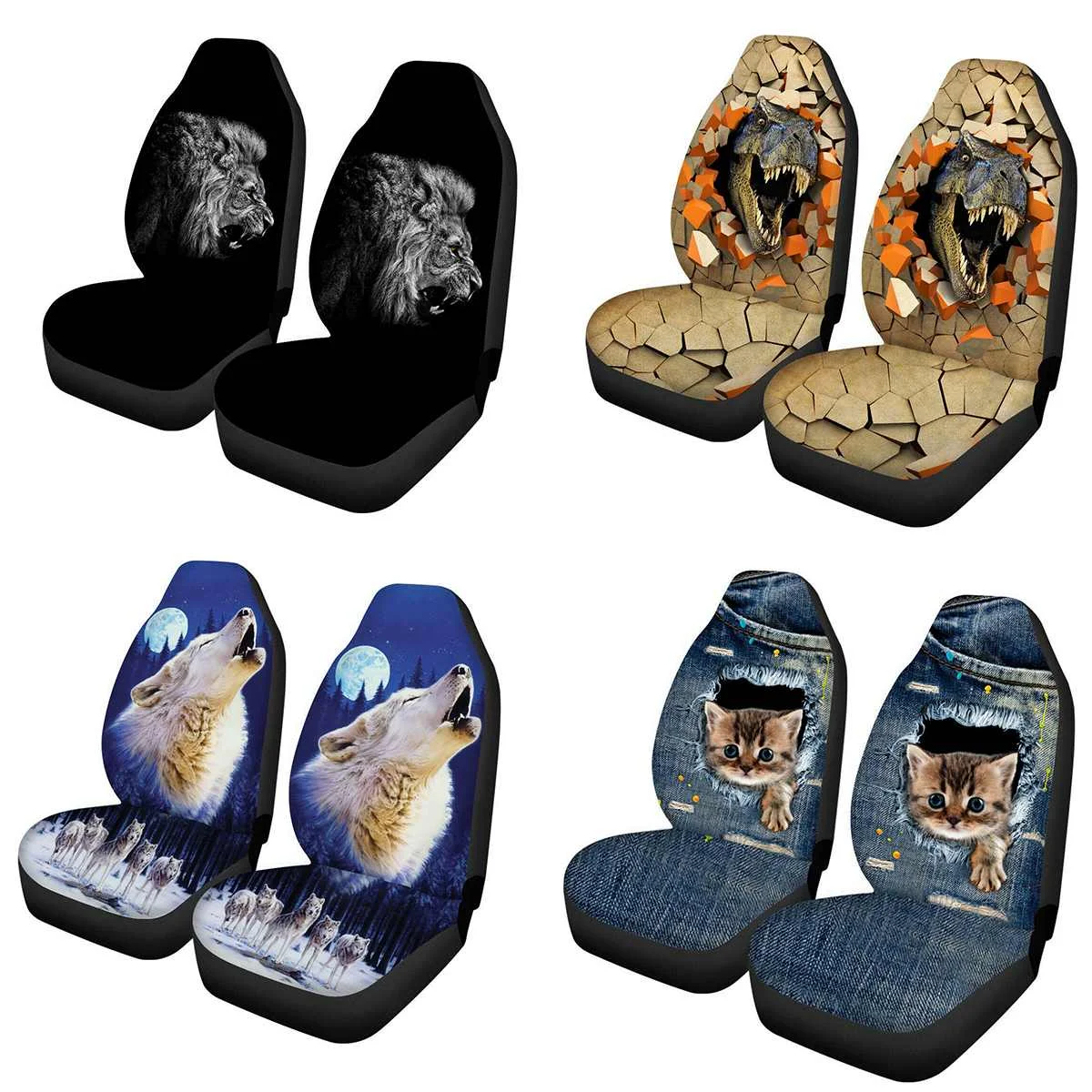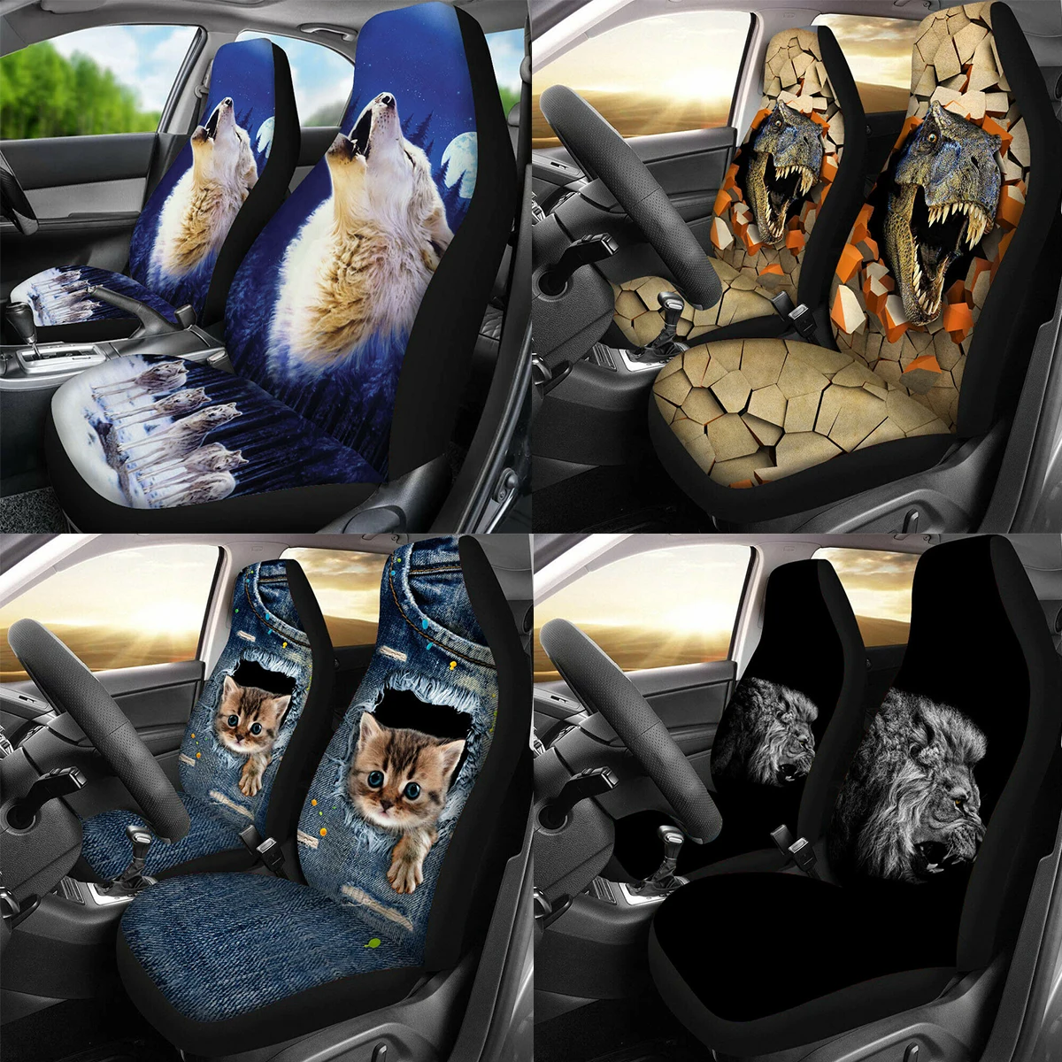 Универсальные чехлы на сиденья автомобиля, чехлы с 3D принтом животного, волка, автостайлинг, чехлы на сиденья автомобиля, полностью Защитные чехлы для сидений, аксессуары для интерьера