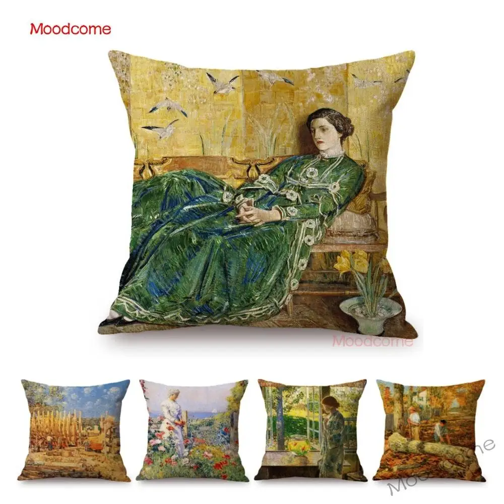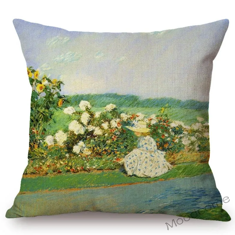 Льняной чехол для диванной подушки, с изображением художника импрес...