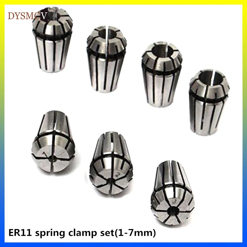 Набор пружинных зажимов ER11, 7 шт., 1 мм, 2 мм, 3 мм, 4 мм, 5 мм, 6 мм, 7 мм для фрезерного станка с ЧПУ