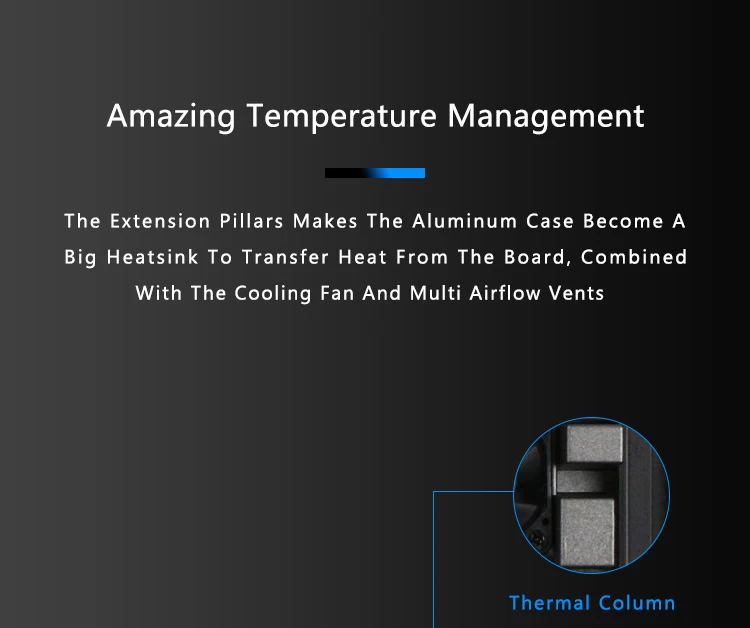 Очень хороший чехол для Raspberry Pi 4, вероятно, один из лучших. Он очень внимательно относится к деталям. Его алюминиевый корпус с выходами воздуха и вентилятора делает его очень холодным. Выход HDMI на заднюю часть также очень хорош, чтобы иметь кабели на том же сайте. Светодиоды отлично подходят для их прозрачного пластикового нижнего корпуса. Легкий доступ к micro SD. Позволяет оплатить Raspberry с помощью задней кнопки. Он позволяет регулировать скорость вентилятора в соответствии с температурой чипа. В Интернете вы можете увидеть много информации о ней. Это того стоит.