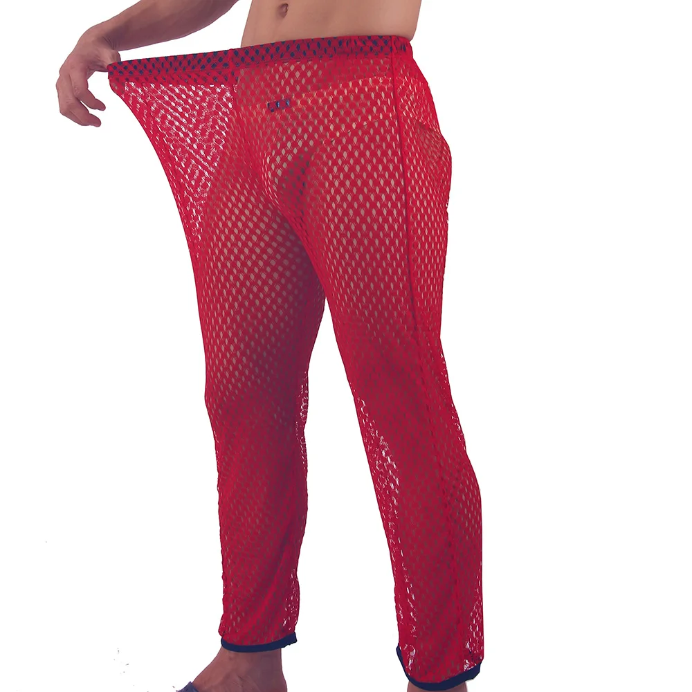 Пикантные мужские прозрачные сетчатые штаны, Мужские пижамные штаны, мужские прозрачные длинные штаны, брюки, одежда для сна