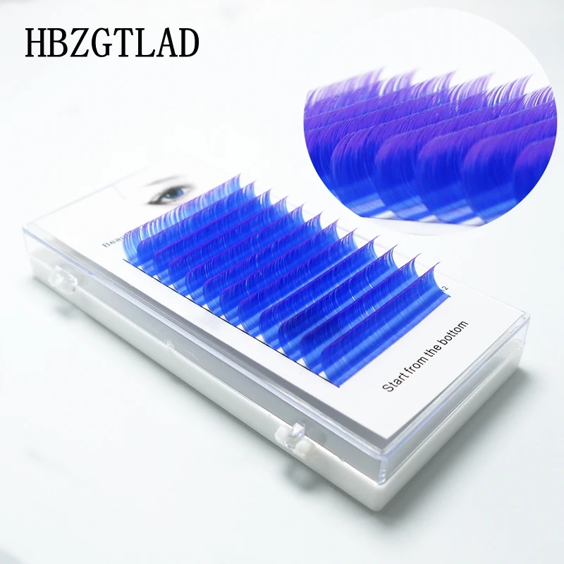 Ресницы HBZGTLAD накладные CD индивидуальные фиолетовые и синие, цветные, 0,07-0,1 мм, 8-15 мм