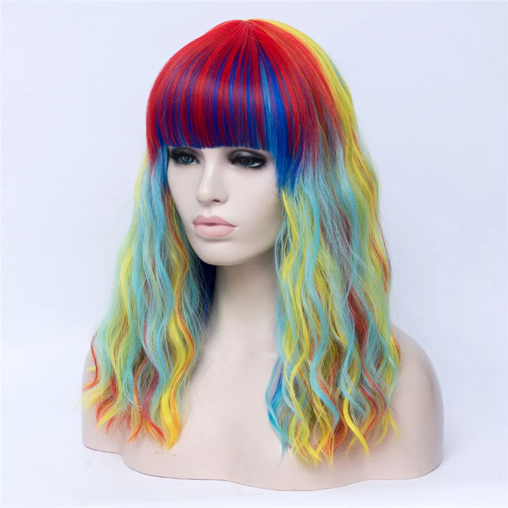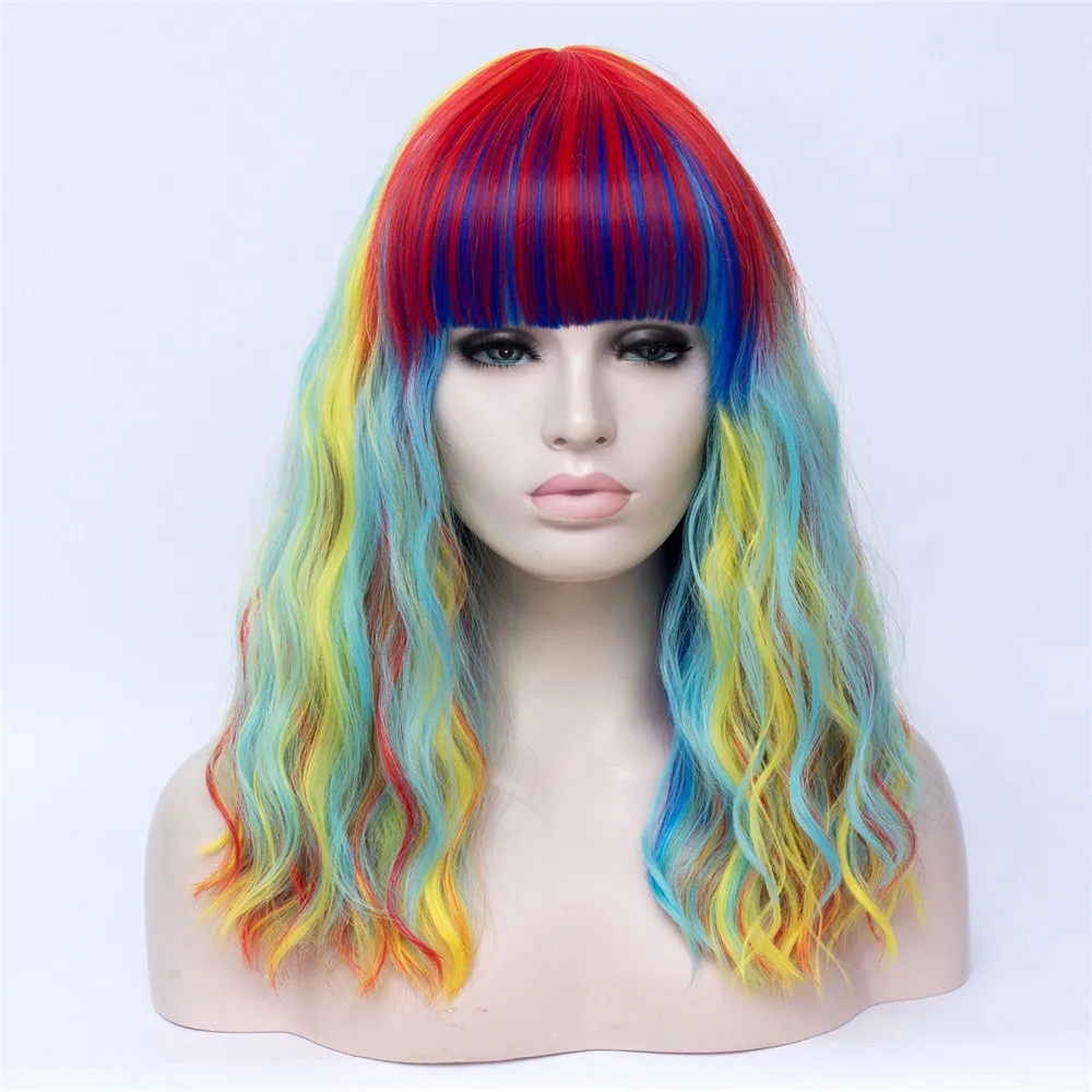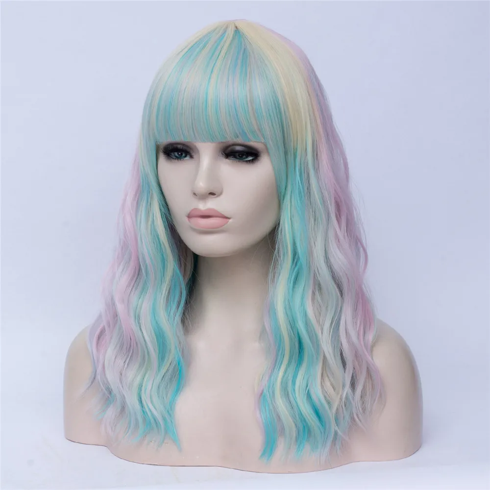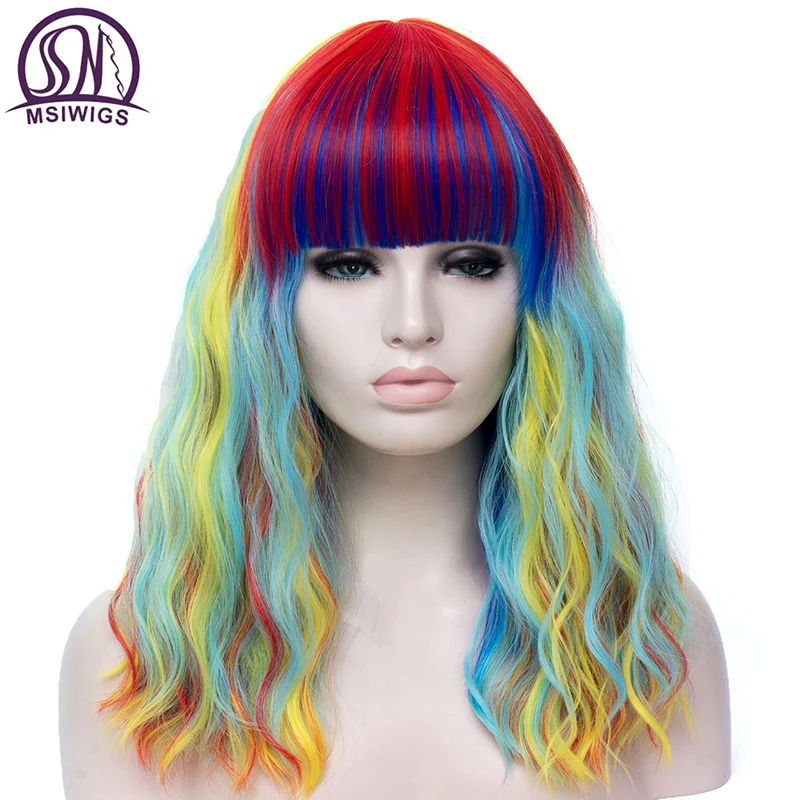 Длинные волнистые радужные парики MSIWIGS Лолиты с челкой, высокотемпературные волоконные синтетические парики для косплея для девочек на Хэллоуин