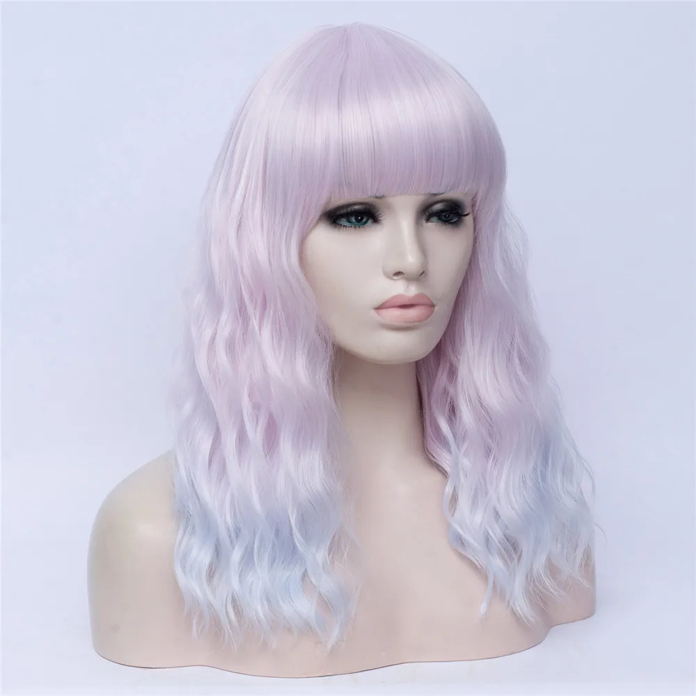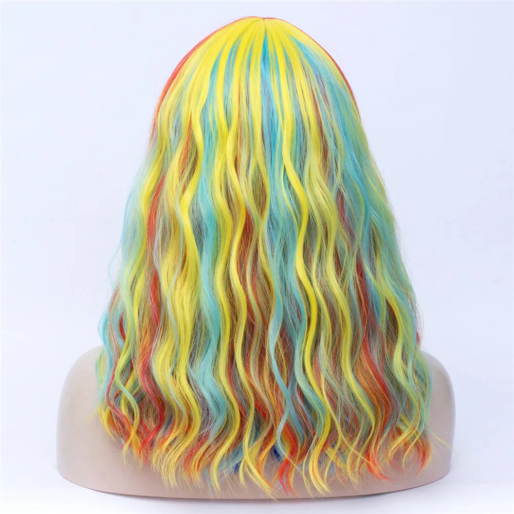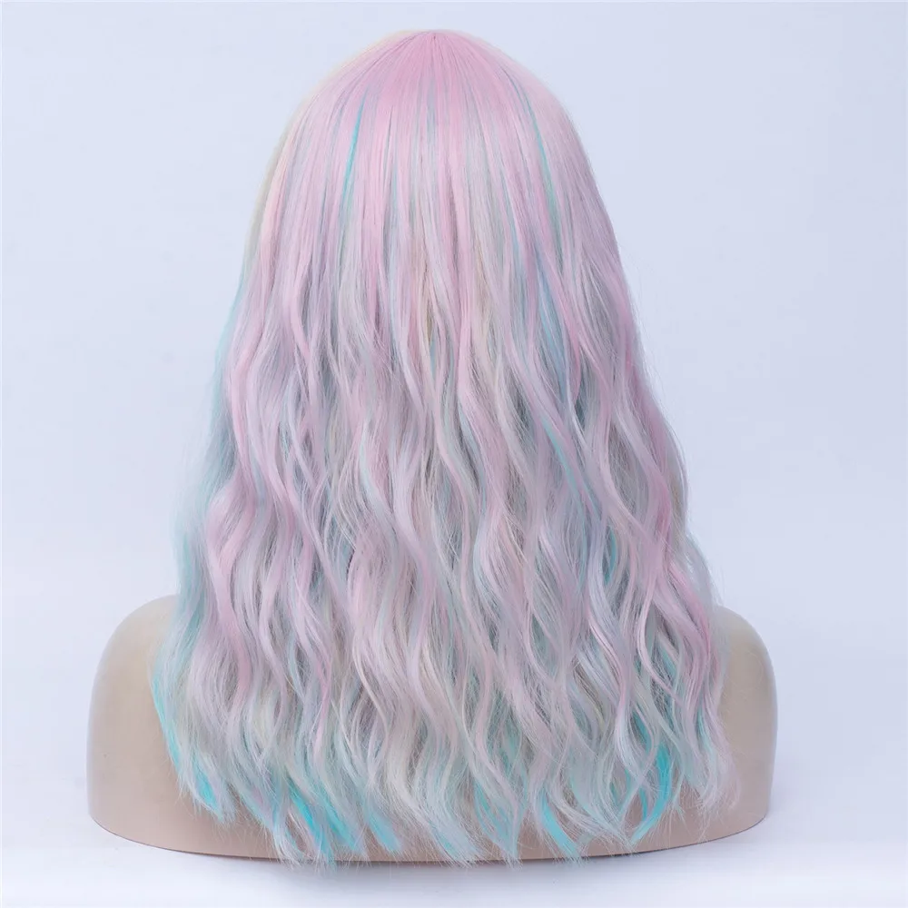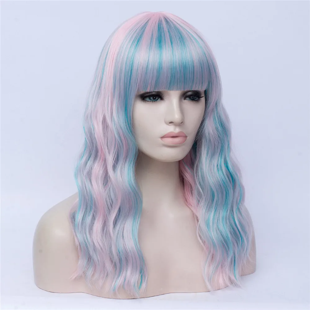 Длинные волнистые радужные парики MSIWIGS Лолиты с челкой, высокотемпературные волоконные синтетические парики для косплея для девочек на Хэллоуин