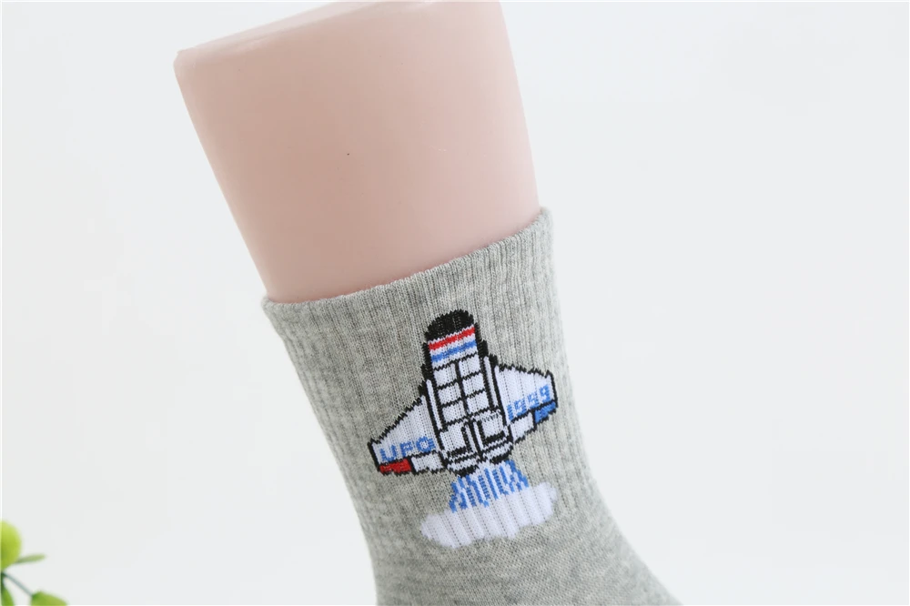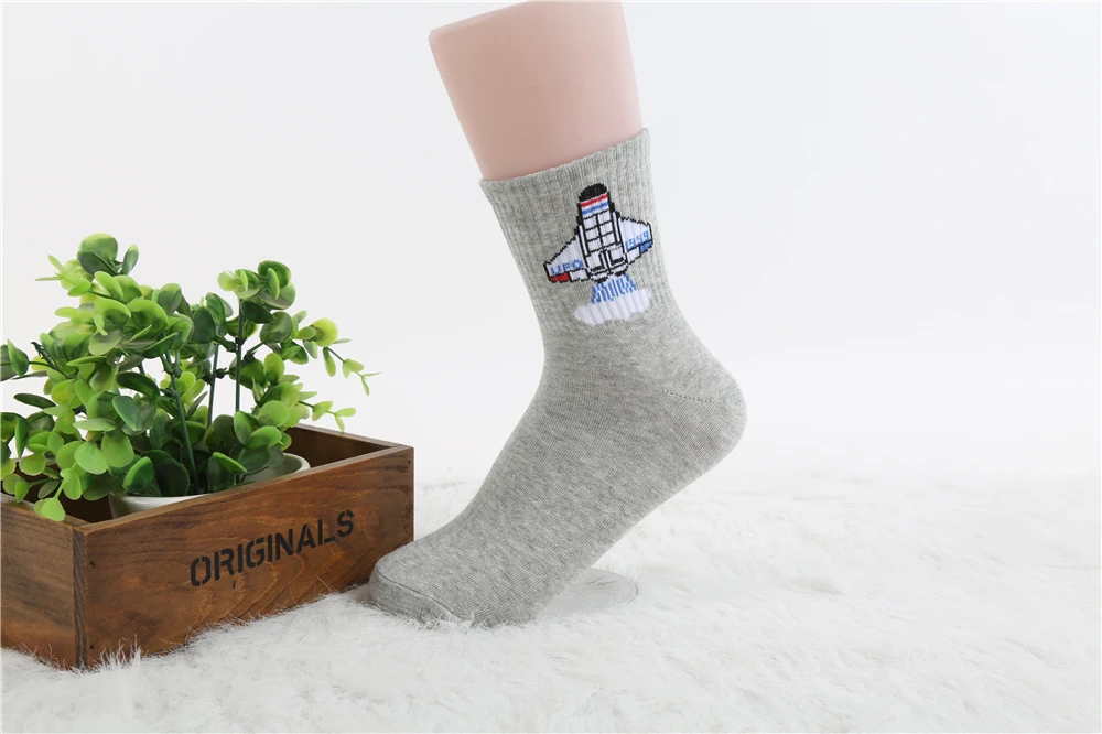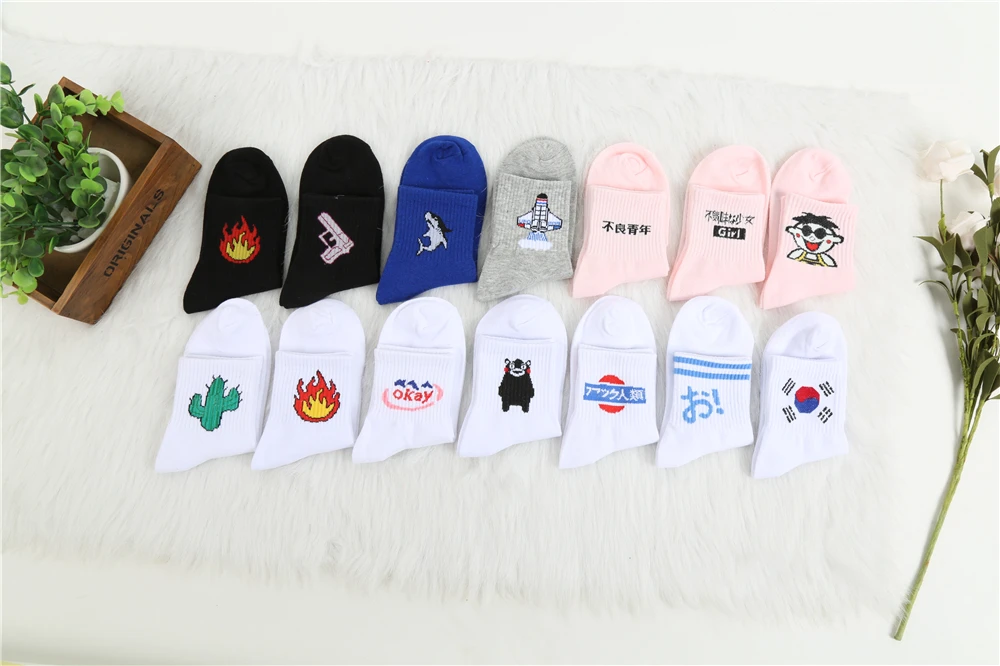 Носки мужскиеженские в Корейском стиле, хлопковые в японском стиле Харадзюку, кактусовый пистолет в китайском стиле, с рисунком котенка, пламени, пламени, Ulzzang, акулы, инопланетянина, рождественские