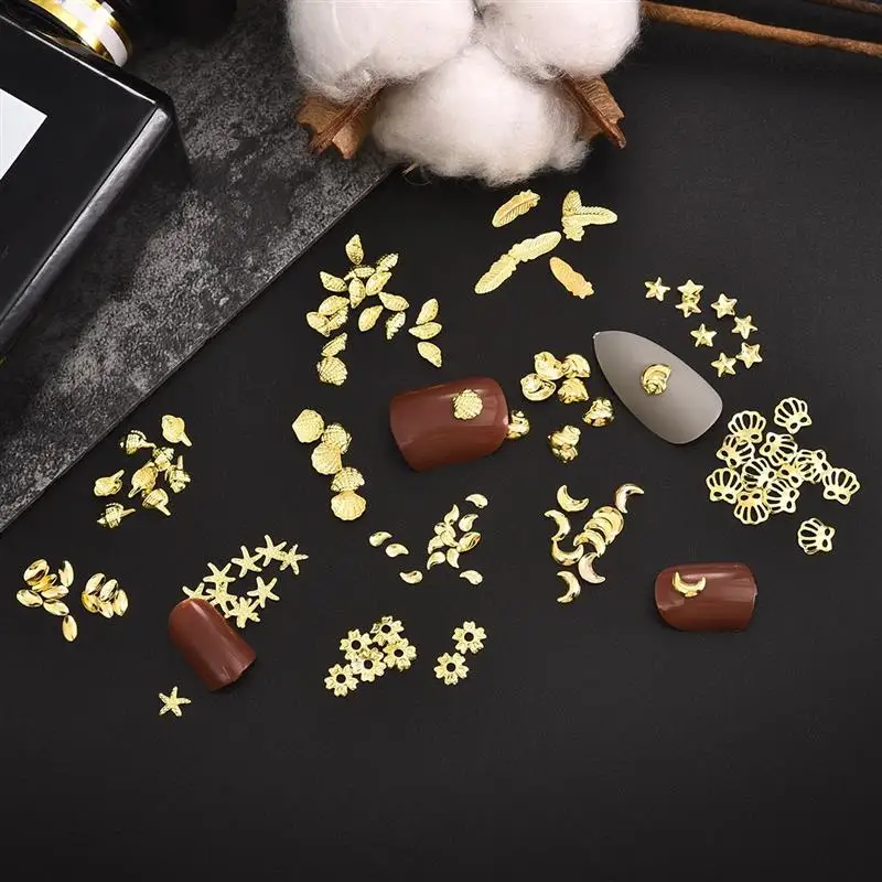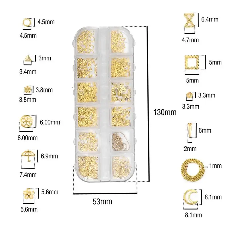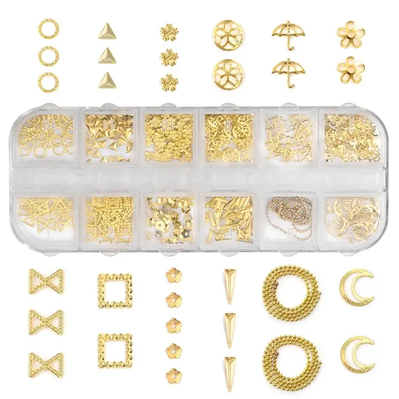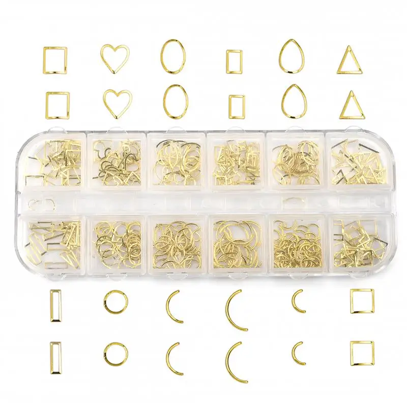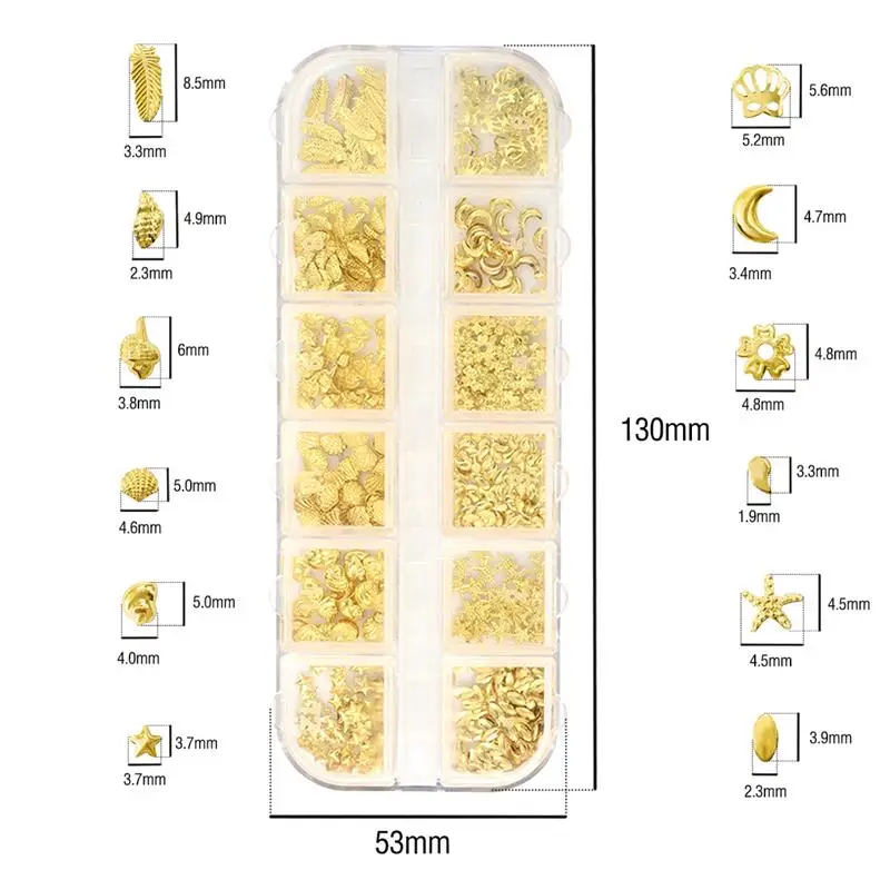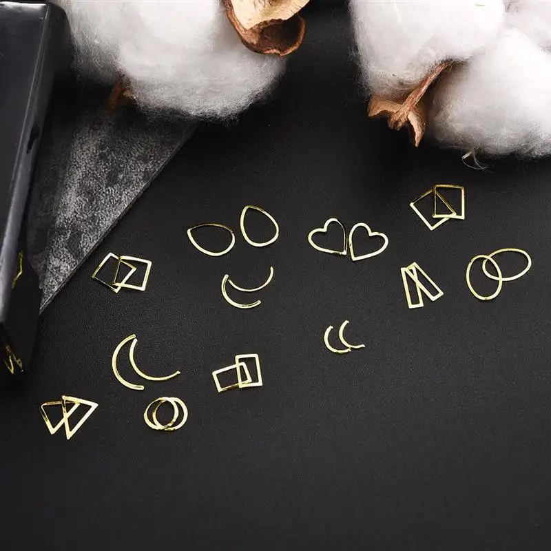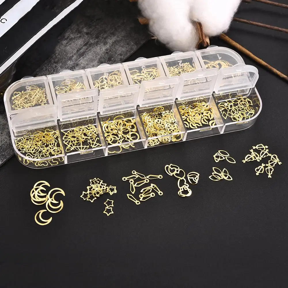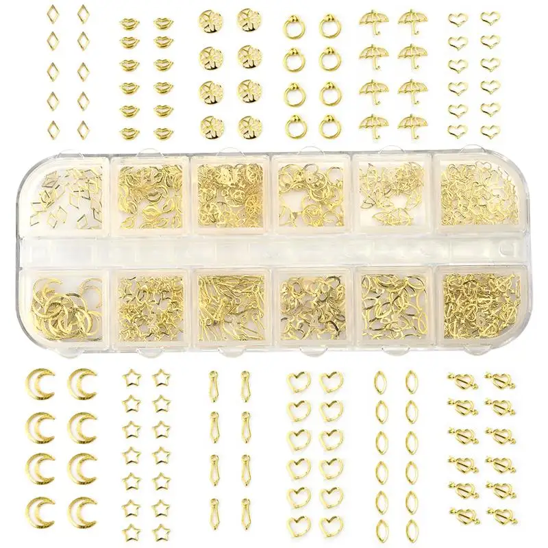 12 сетокнабор, 3D полые украшения для ногтей, Золотое сердце, звезд...
