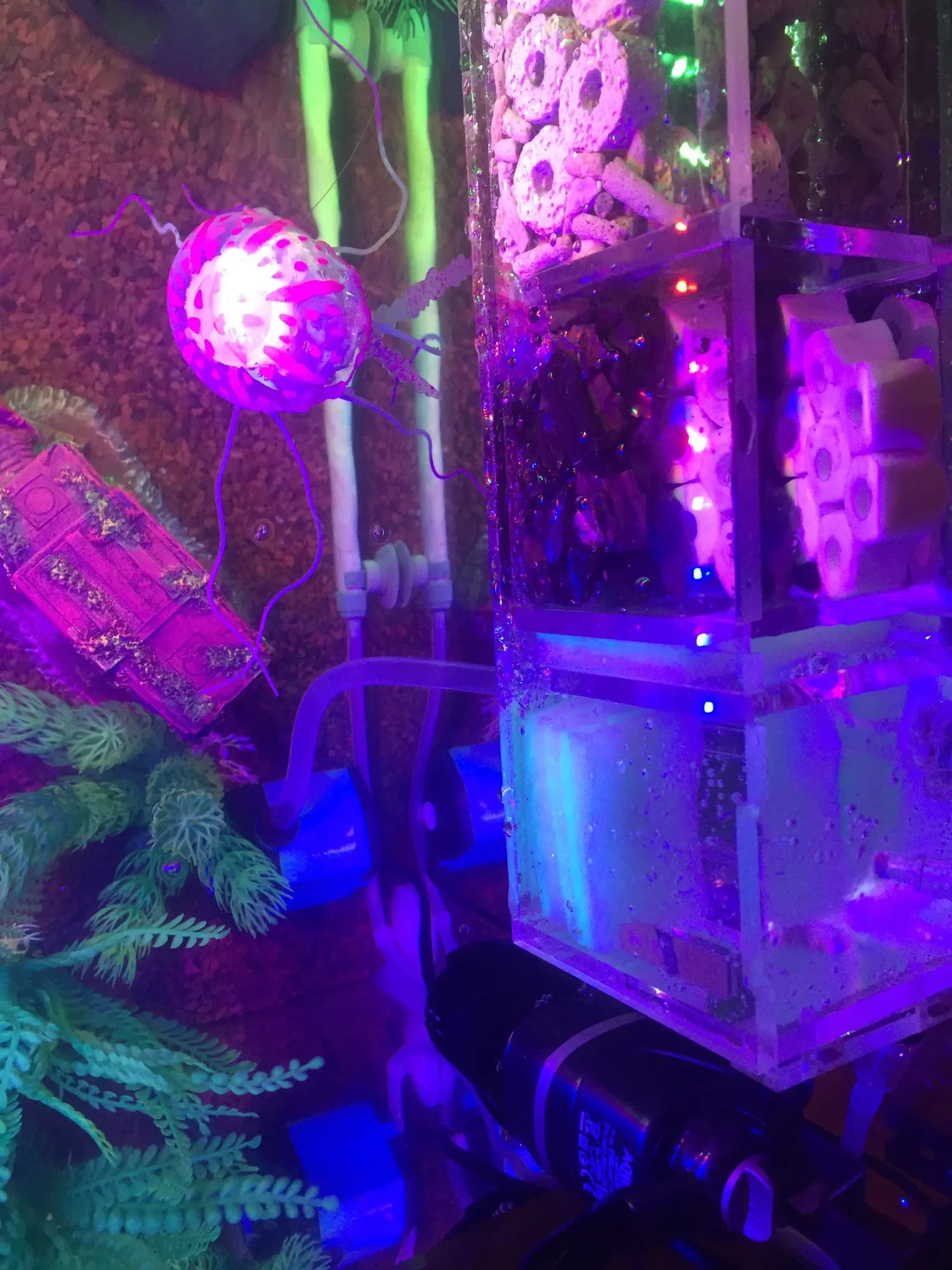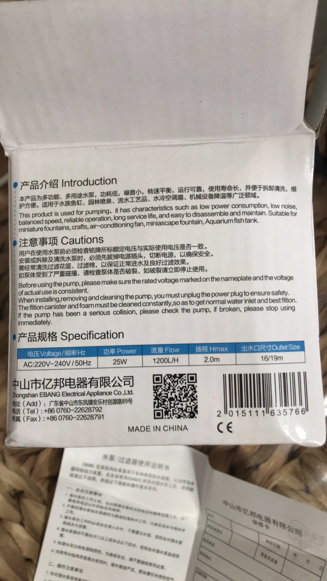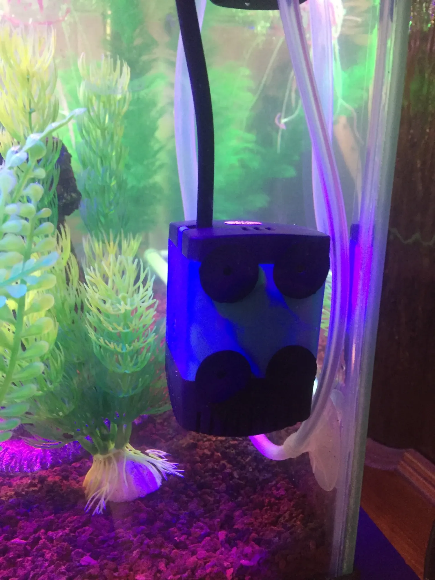 Ехал насос в Украину долговато и почему то через Латвию, в общем где-то полтора месяца) Достаточно мощный для 3 Вт, хорошо подошёл в круглый маленький 7,5 л аквариум, хорошо прицепился на стенку из за 4 присосок снизу) первые фото без воды, последнее уже с ней)