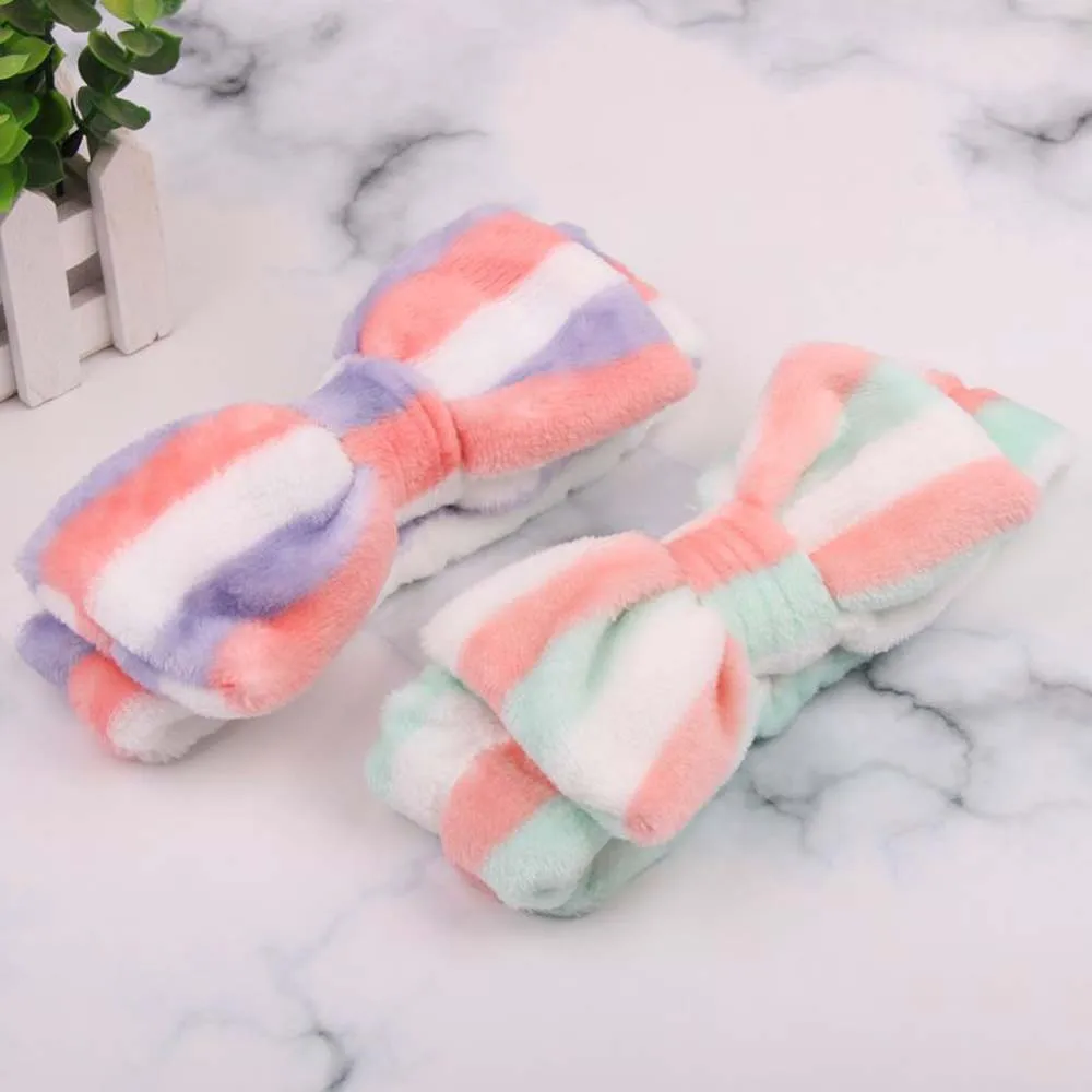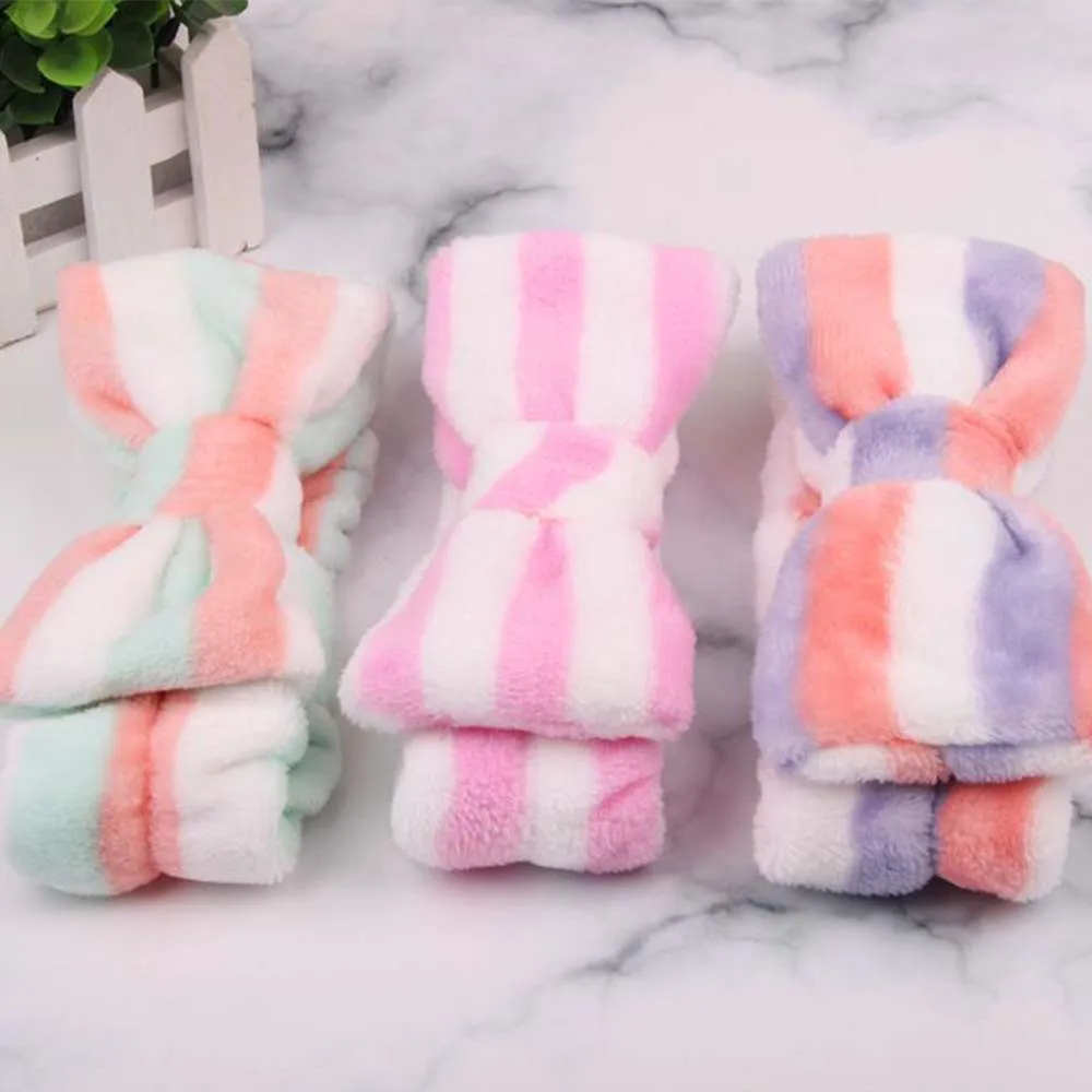 Женская мягкая эластичная повязка на голову из кораллового флиса с большими кроличьими ушками для спа-ванны душа Косметическая повязка для мытья лица головной убор