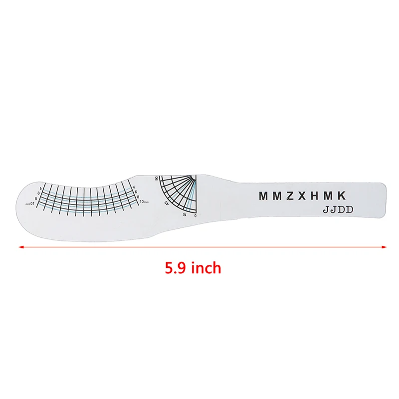 Особенности:1. Абсолютно новый и высококачественный2. Премиум материала, высокая прочность и гибкость3. Обеспечивает ровную длину, степень завивки ресниц4. Идеально подходит как для профессионалов по макияжу, так и для начинающих5. Использовать до микроблейдинга и перманентного макияжа для обеспечения симметричности ресниц6. Также служит обычным измерительным инструментом