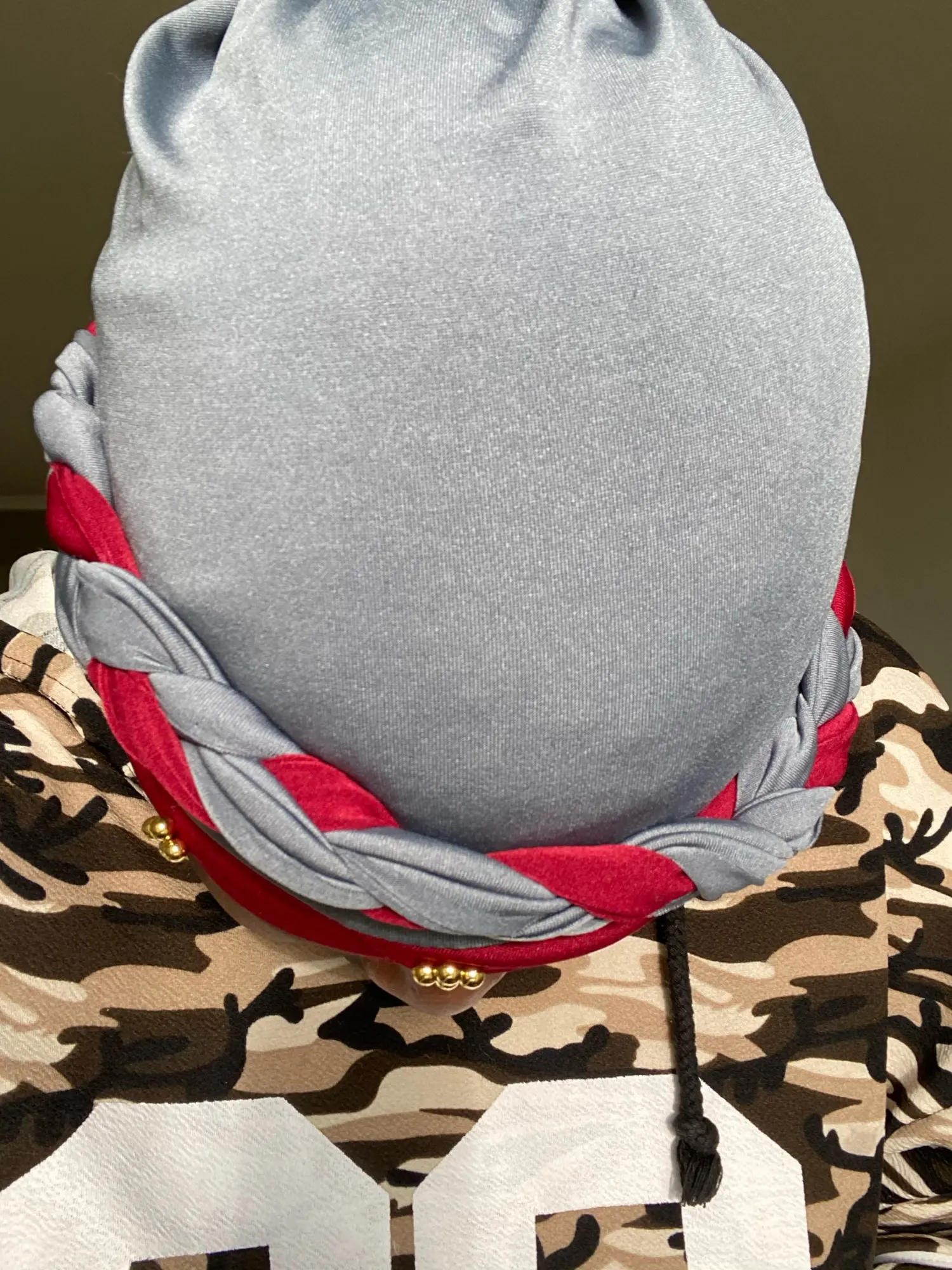 Шапка-тюрбан, из шапочки под хиджаб хлопка, двухцветная, с бусинами, весна-осень, внутренние хиджабы