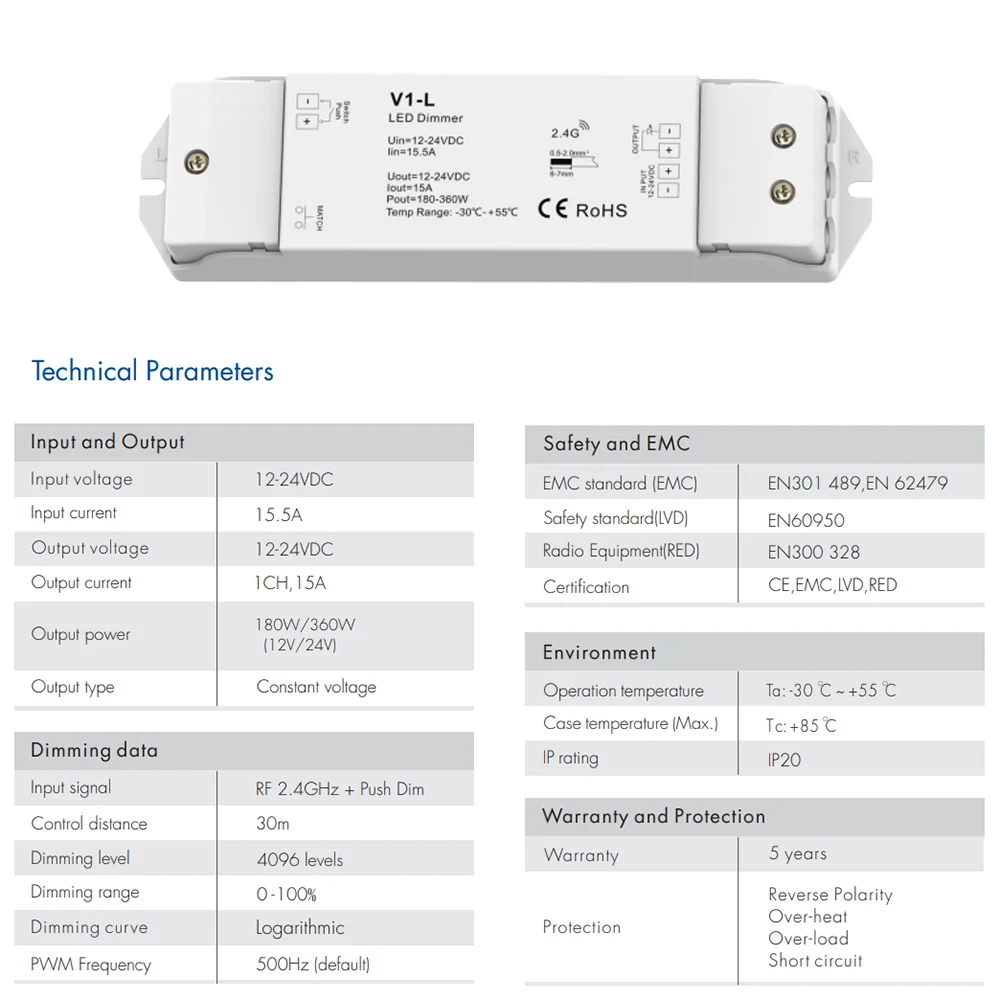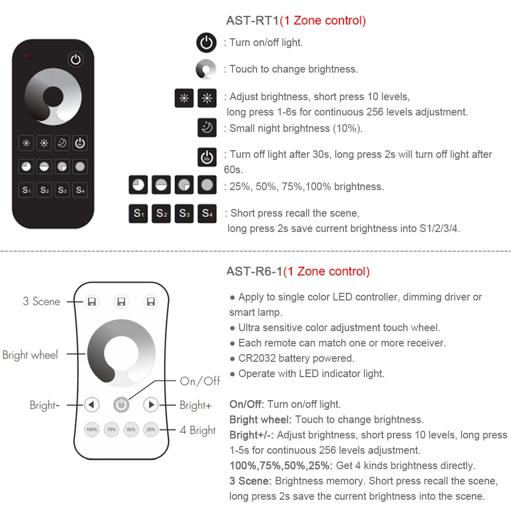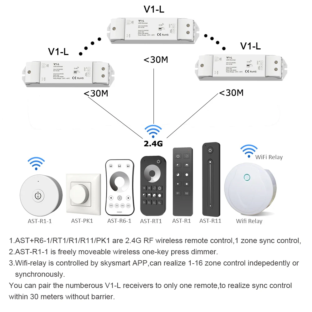 ● Подходит для использования в одной зоне Skydance 2,4G или с пультом дистанционного управления с затемнением нескольких зон.