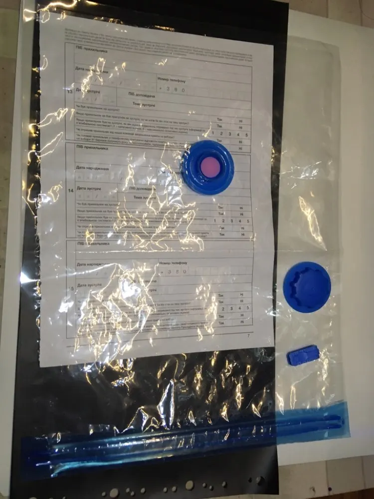 Получили посылку ; доехала за 21 дней. В деле проверили - всё отлично , плотный пакет и двойная зип лента - вакуум держит *( упаковывает хорошо как твёрдые так и мягкий предметы ) Насос простой но рабочий вариант....Для катушки филамента 3D принтера купил . Лист А4. Спасибо.