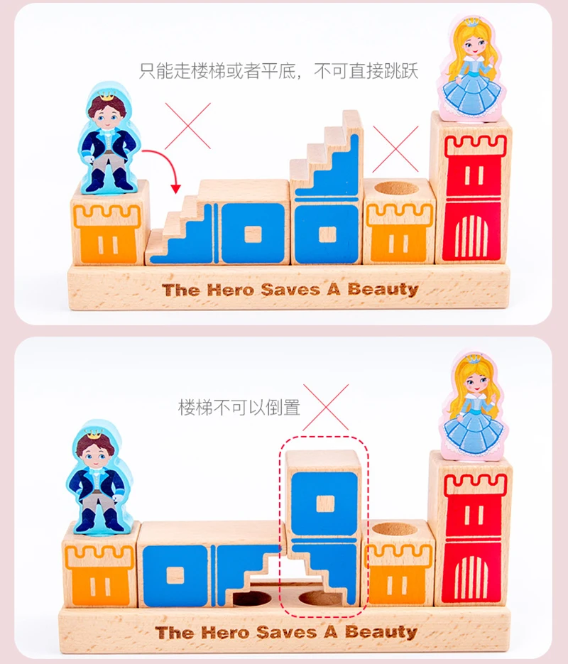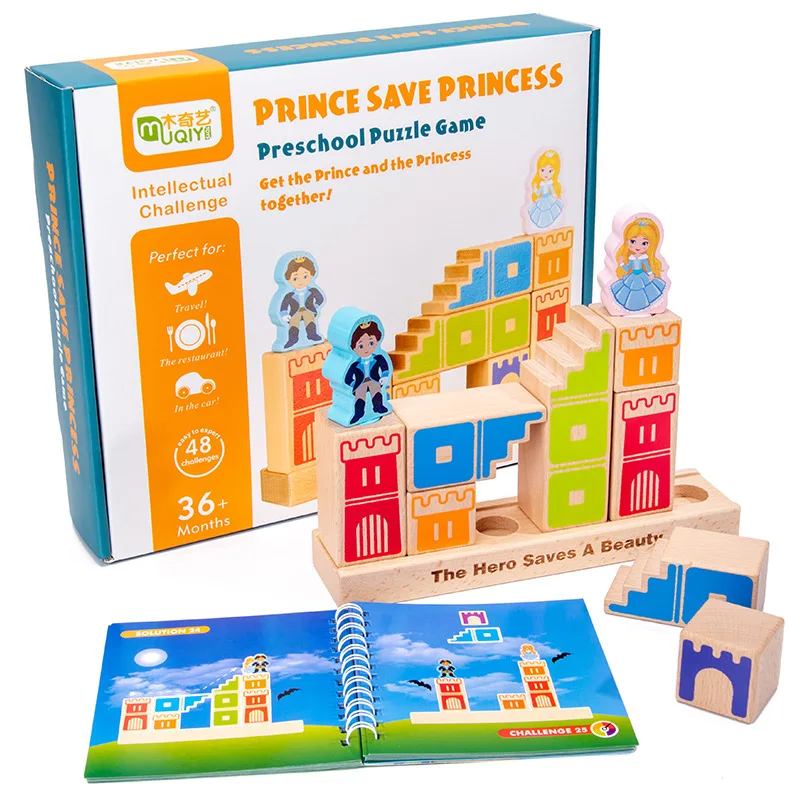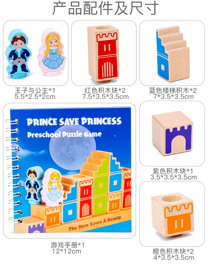 Деревянные строительные блоки Монтессори Camelot, игрушки принц, спасите принцессу, обучающие игры для детей, 3d головоломки, рождественские подарки