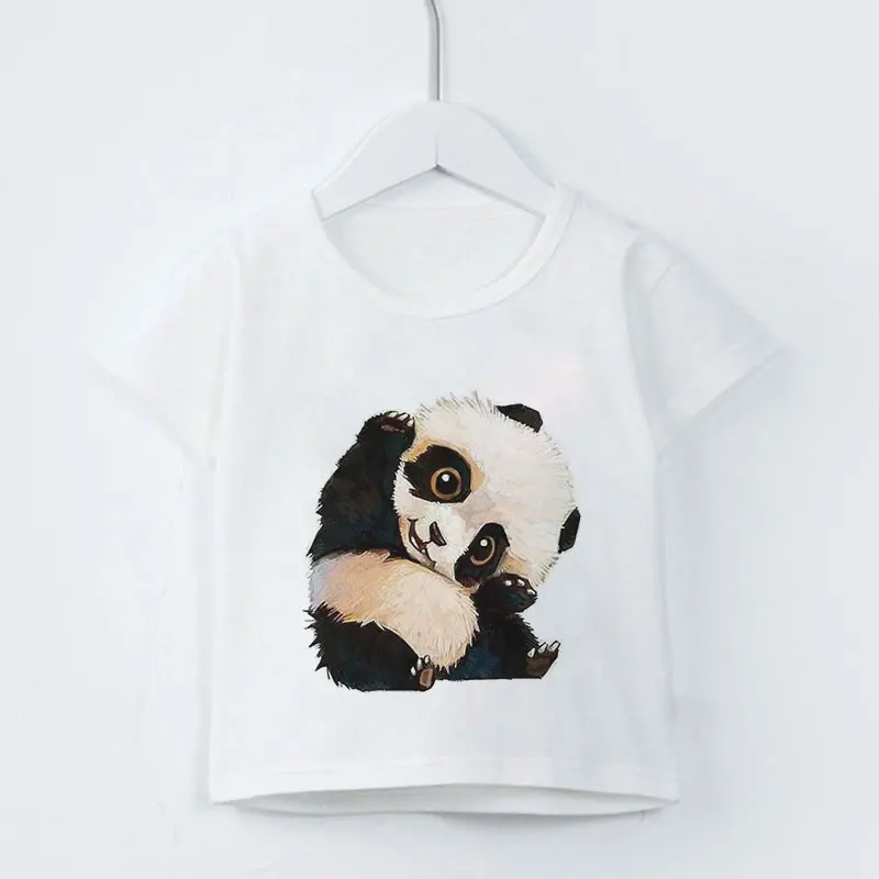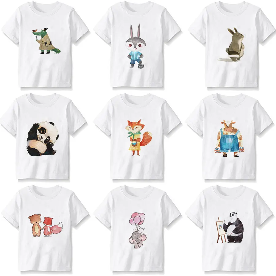 Летняя детская футболка для мальчиков, футболки с коротким рукавом и принтом слона, кролика, панды для маленьких девочек, милая детская футболка, Забавные футболки, топы для мальчиков