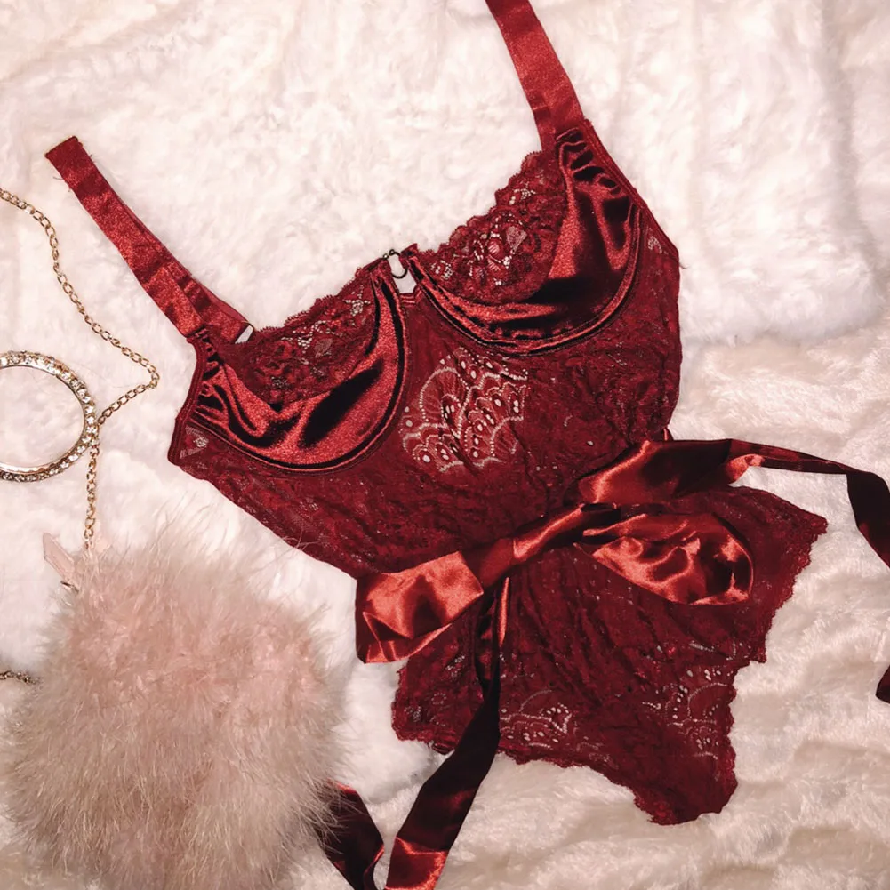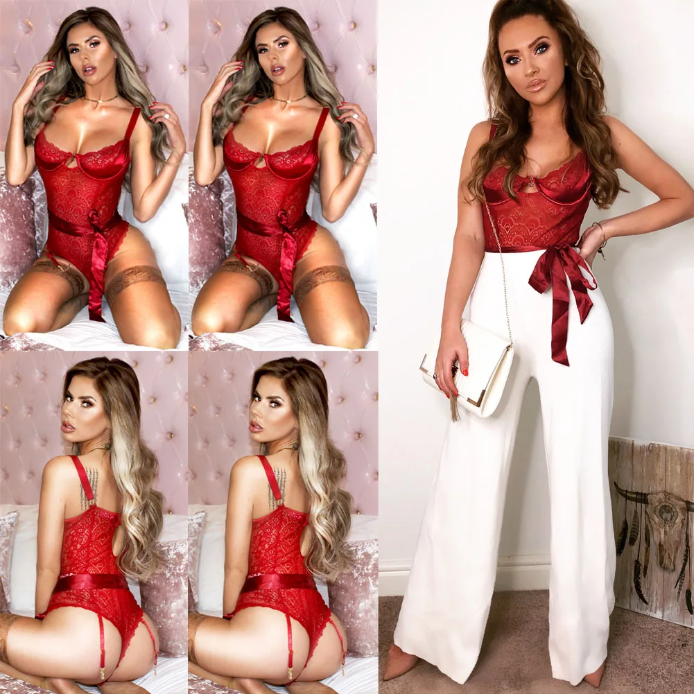Женское сексуальное нижнее белье, Красное Кружевное Бандажное боди-стринги, нижнее белье, одежда для сна, комбинезон на Рождество