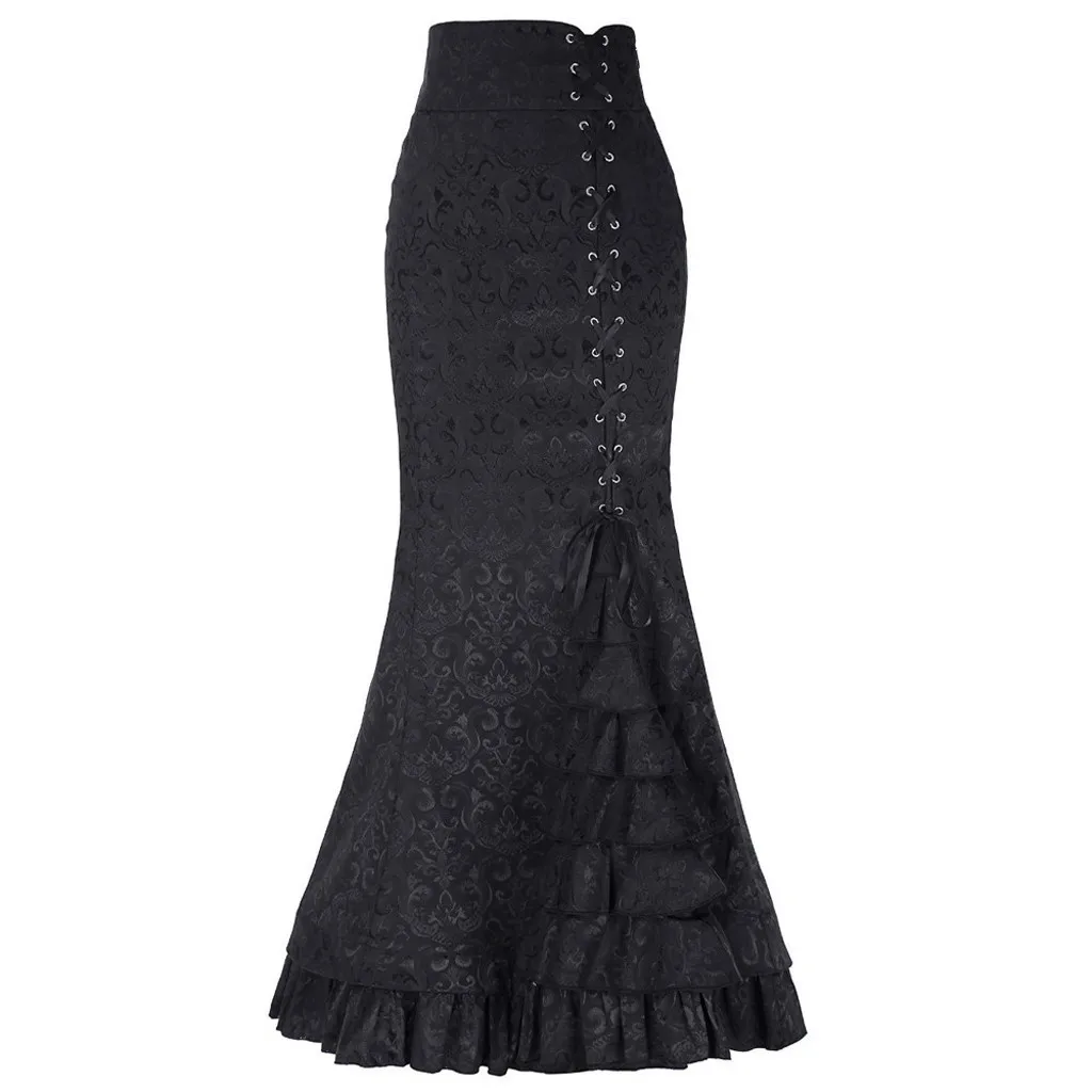 Женская винтажная юбка-макси в стиле стимпанк Home Nest, юбка-годе русалка Готическая длинная юбка-готика в стиле ретро