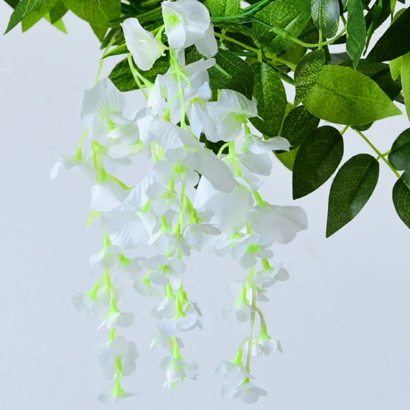 Искусственные цветы, 2 м, Вистерия искусственная, венок из виноградных листьев, для свадьбы, украшение арки, искусственные растения, листва из ротанга, для стены плюща