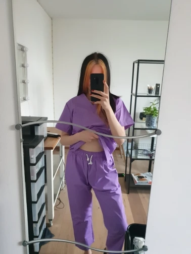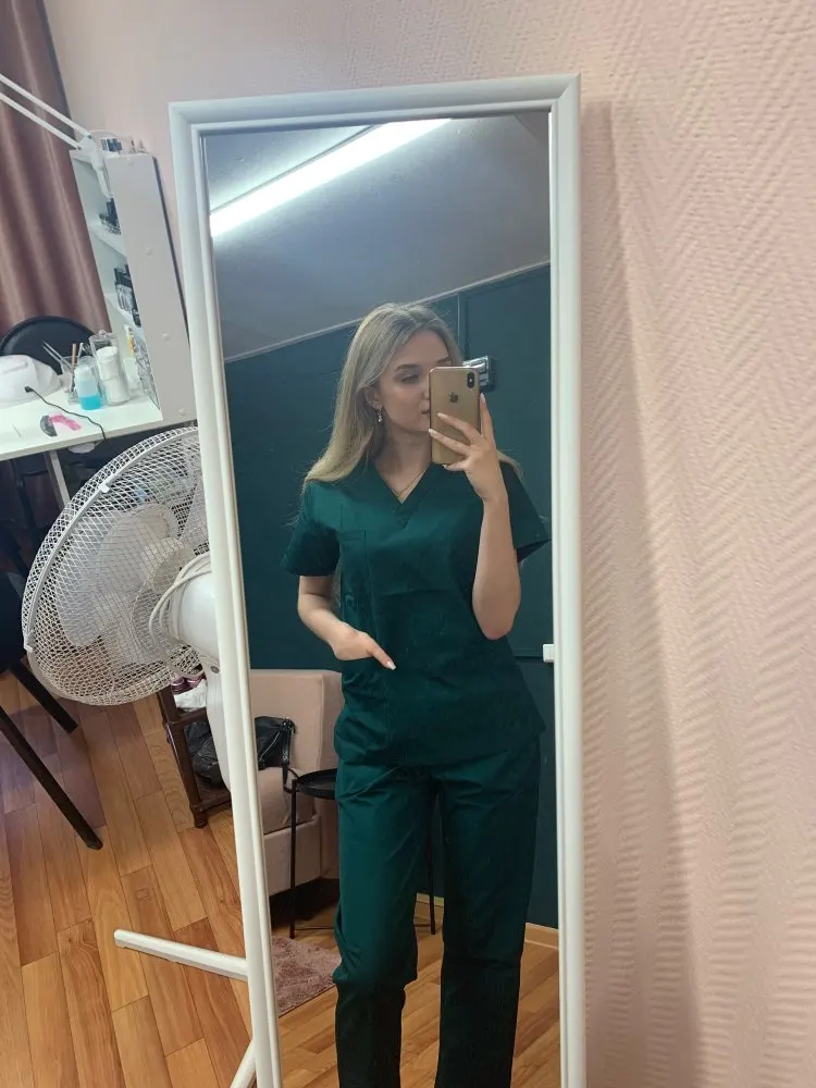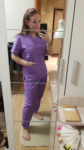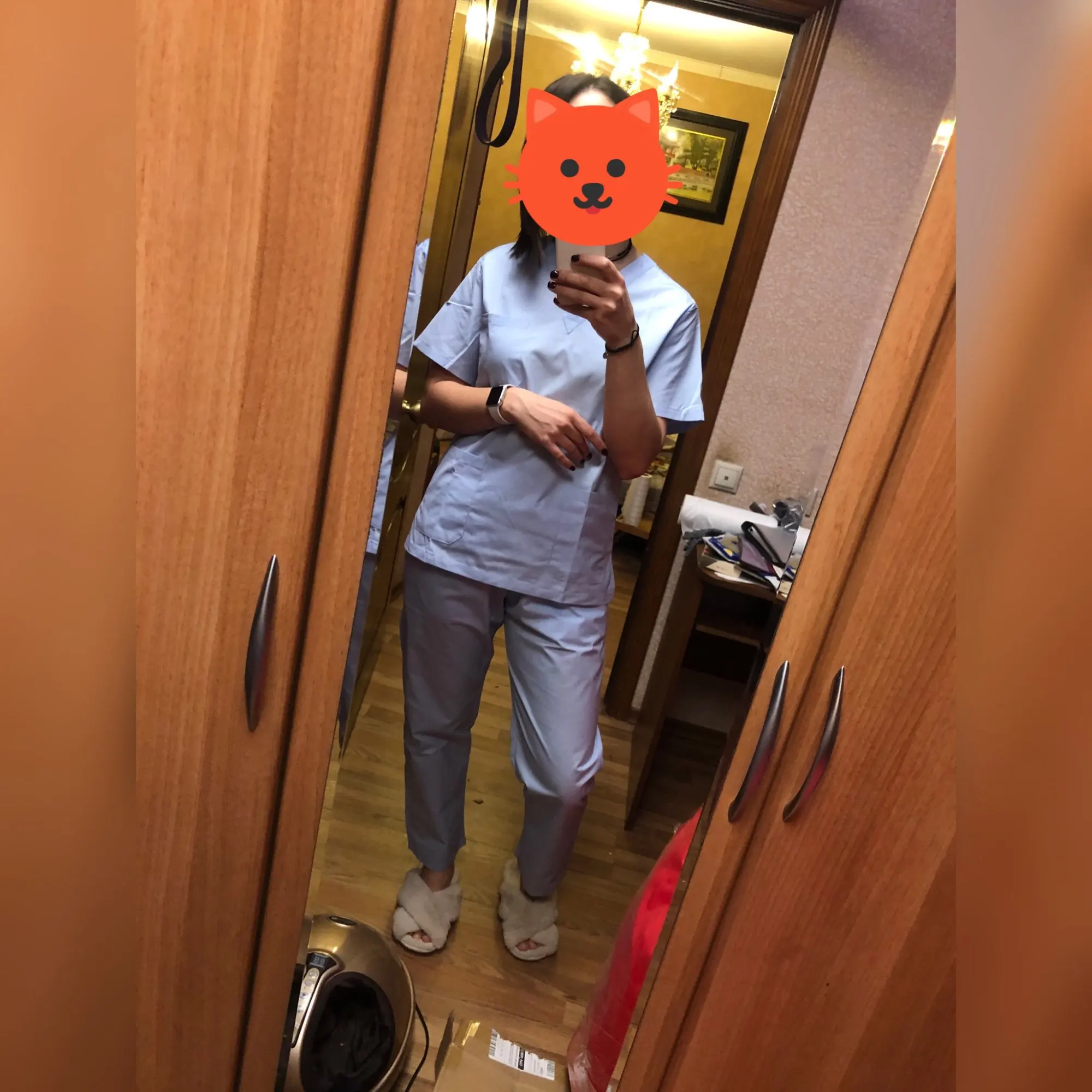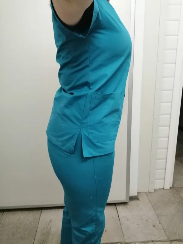 Костюм хороший в принципе, но с небольшими минусами. Во первых, ткань очень плотная, плохо дыщащая - в течение рабочего дня прям упариваешься в нём, во вторых, ткань быстро мнется - буквально пару раз присел и всё в складках (хотя перед этим 30 минут выглаживала до идеального состояния), в третьих, очень всё липнет к нему - на фоне моего чёрного костюма видна каждая ниточка, каждая пылинка. вообщем сидит на фигуре прекрасно, для невысоких (мой рост 160 и мне по щиколотки), смотрится хорошо, но увы не практично - а для медицинской одежды я считая это важно. поставила бы 3 звезды, но учитывая стоимость, доставку - пусть будет 4 звезды)