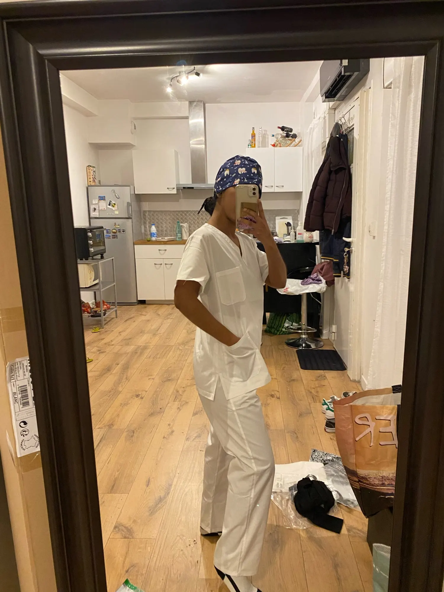 Скрабы пришли сегодня, хороший цвет, красиво смотрятся. Немного жесткий материал, я 135 фунтов (~ 62 кг) и 5'6. Я хотел бы рассмотреть размер, так как топ с эффектом потертости немного прилегает к бедрам. Штаны идеальны, если вы выше меня, выбирайте размер больше.
