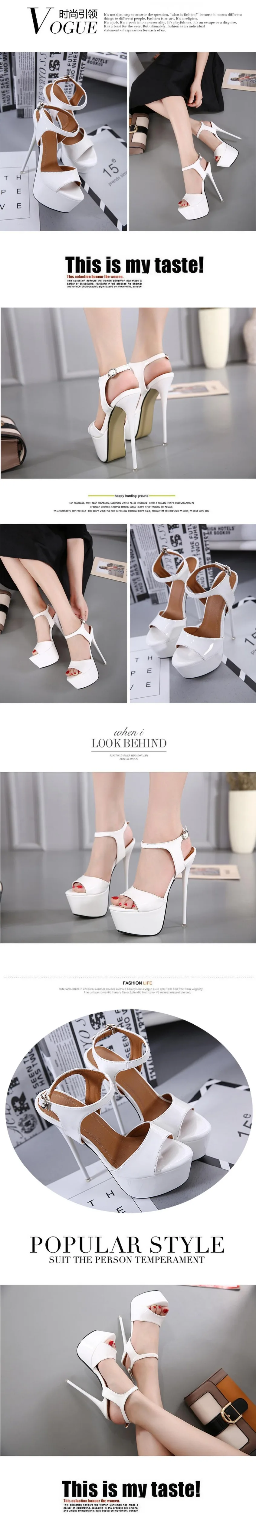 Сандалии женские из лакированной кожи, высокий каблук 16 см, пикантная Клубная обувь на платформе, вечерние босоножки, размеры 42 43 44 45 46, на лето