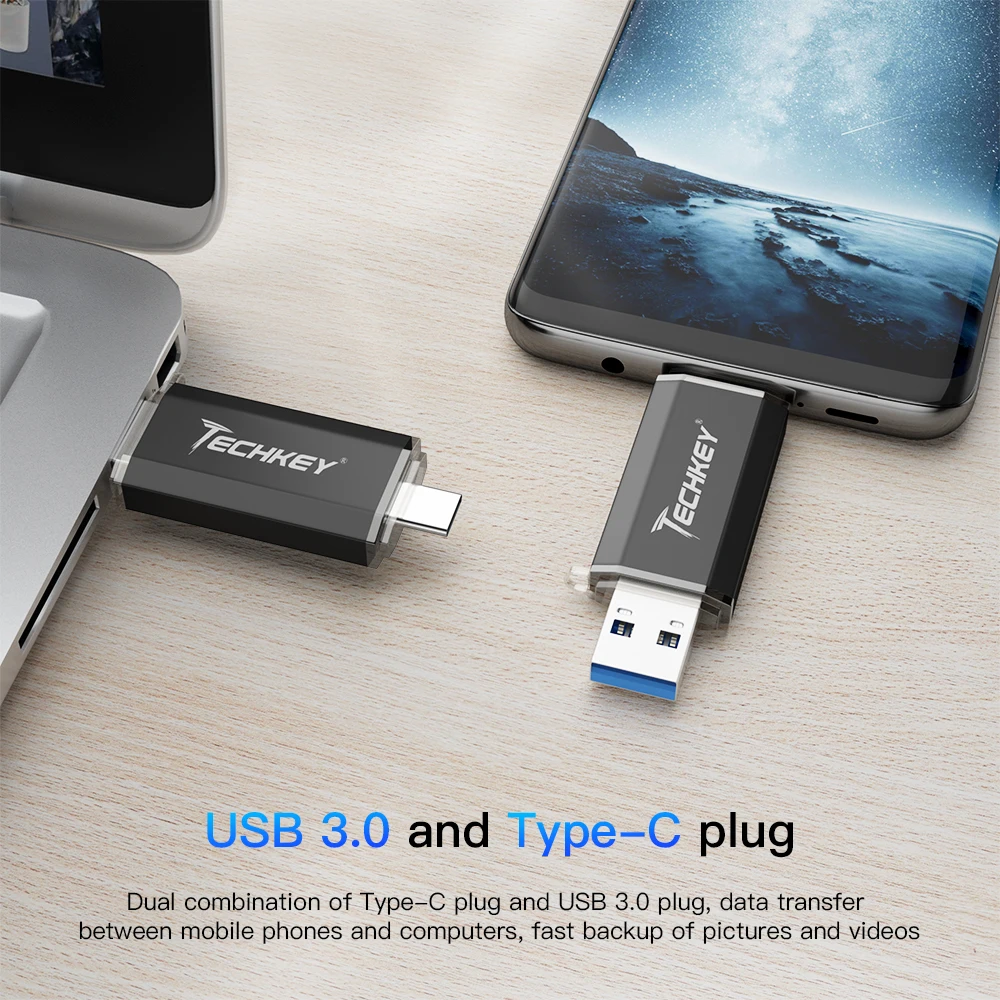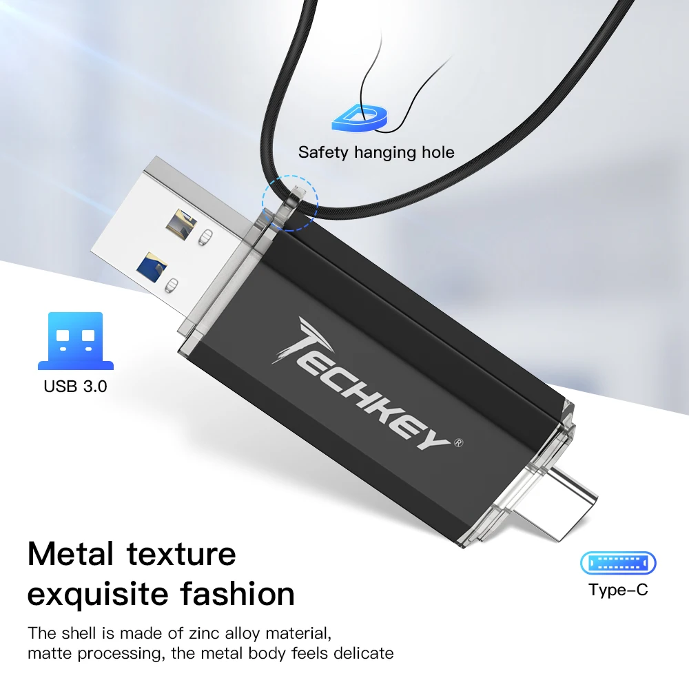 Usb флеш-накопитель TECHKEY, usb 3,0 Type-C, 128 ГБ, 64 ГБ, 32 ГБ, логотип на заказ, флешка 16 ГБ, карта памяти ГБ, телефоны, устройство для хранения ПК