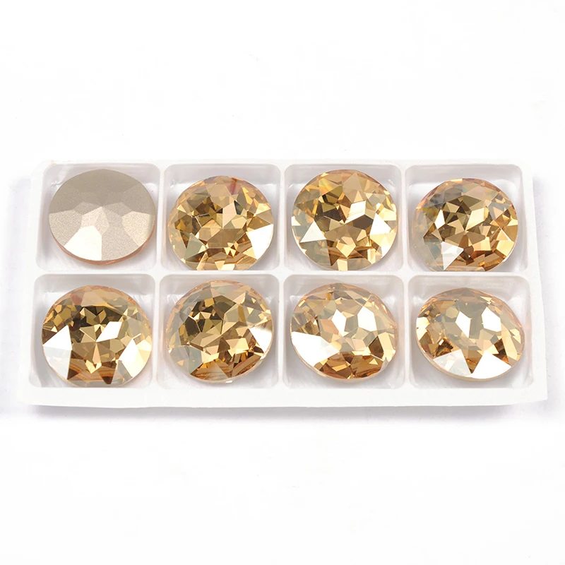 Как алмаз, 1201 плоский шатон-это круглый камень, который идеально подходит для использования в самых маленьких условиях или отливках. Они большие, круглые кристаллы, которые имеют мелкую мягкую заднюю часть. Они доступны в ограниченном выборе больших размеров и выборочном наборе цветов. Этот камень изготовлен из передового кристалла и не содержит свинца. Выдающаяся точность 1201 плоских болтов происходит от его замысловатого кроя, который имеет несколько граней. Благодаря превосходному крою и классическому сочетанию, он идеально вписывается в компактный и высококачественный дизайн-например, в ювелирном сегменте.