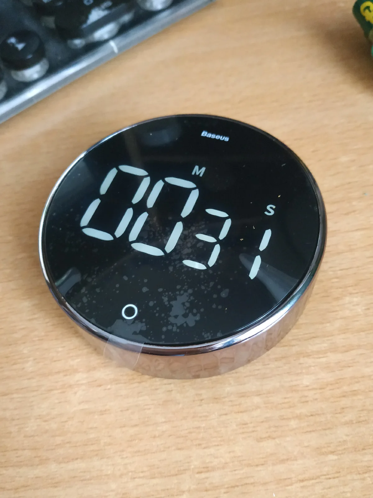 Отличный таймер, ну очень приятно пользоваться (больше месяца). Удобно и быстро ставить время, звук устраивает, красивый. Использую для работы помидорами (интервалами в 25 минут, кто знает). Храню в коробочке, очень удобна. Можно использовать как секундомер. Магнитится к металлическим поверхностям хорошо.