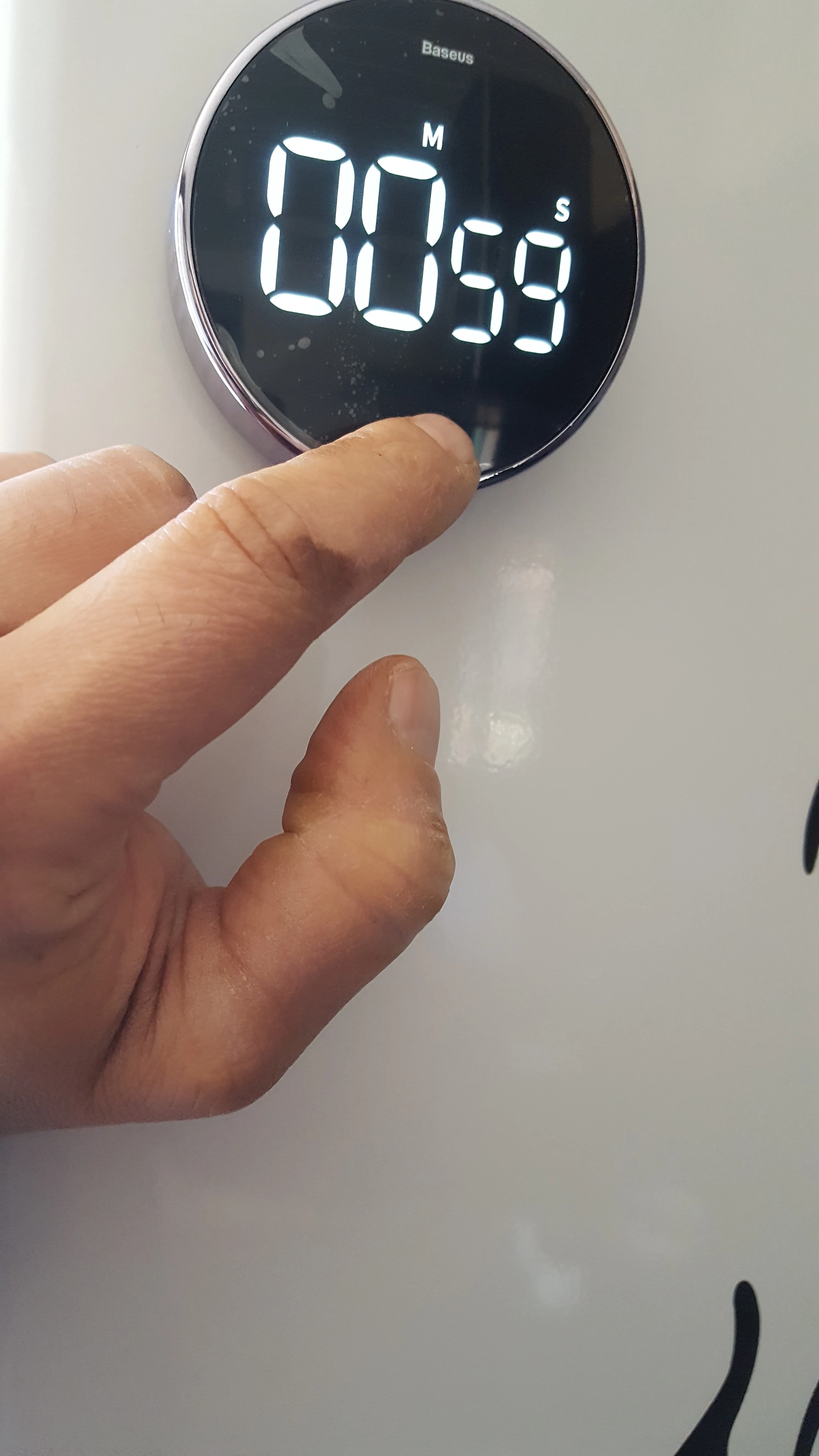 Таймер просто супер. Может работать, как обратный отсчёт, так и замерять сколько времени прошло. Сзади два магнита с верху и с низу, держат очень хорошо. Пришёл за 10 дней