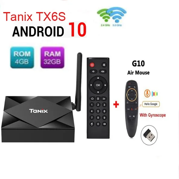 ТВ-приставка Tanix TX6S, Android 10.0, Allwinner H616 опционально, g10, голосовая мышь, 4 Гб, 32 ГБ64 ГБ, медиаплеер 2,4g и 5g, Wi-Fi, BT