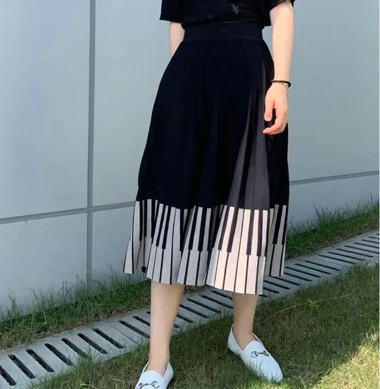 Юбка женская трикотажная с завышенной талией, трапециевидная, плиссированная, весна 2022