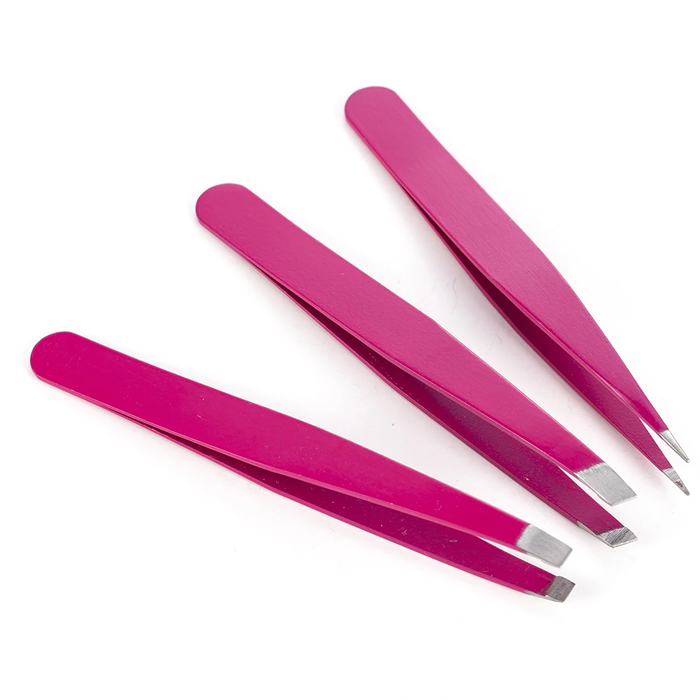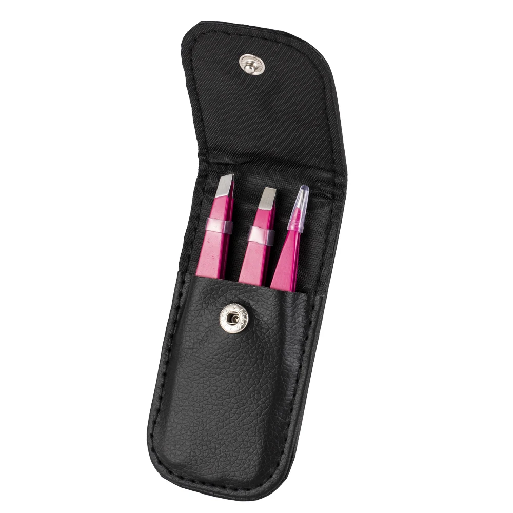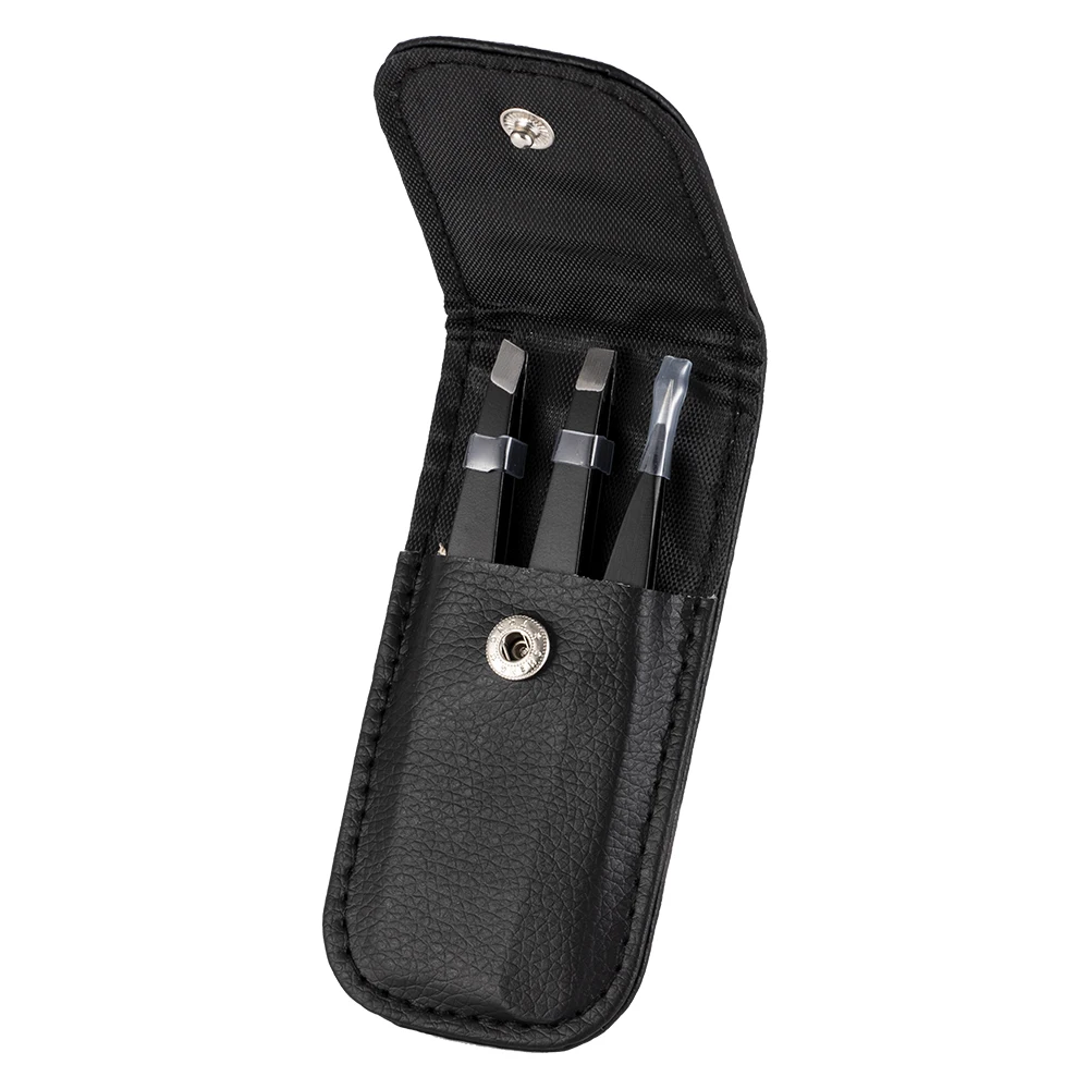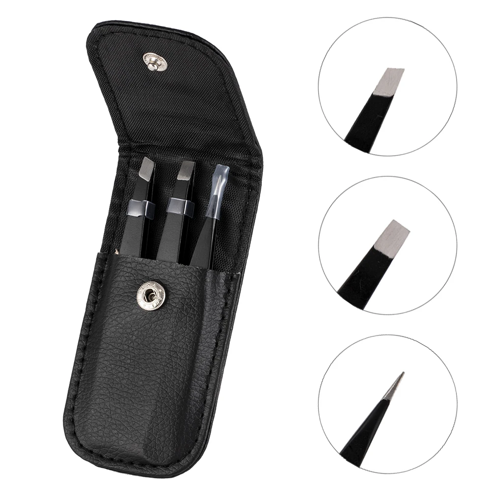 Пинцет для бровей, 3 шт.компл., из нержавеющей стали, с косым кончиком, с плоским кончиком, аксессуар для волос снятие макияжа, с черной сумкой, чехол