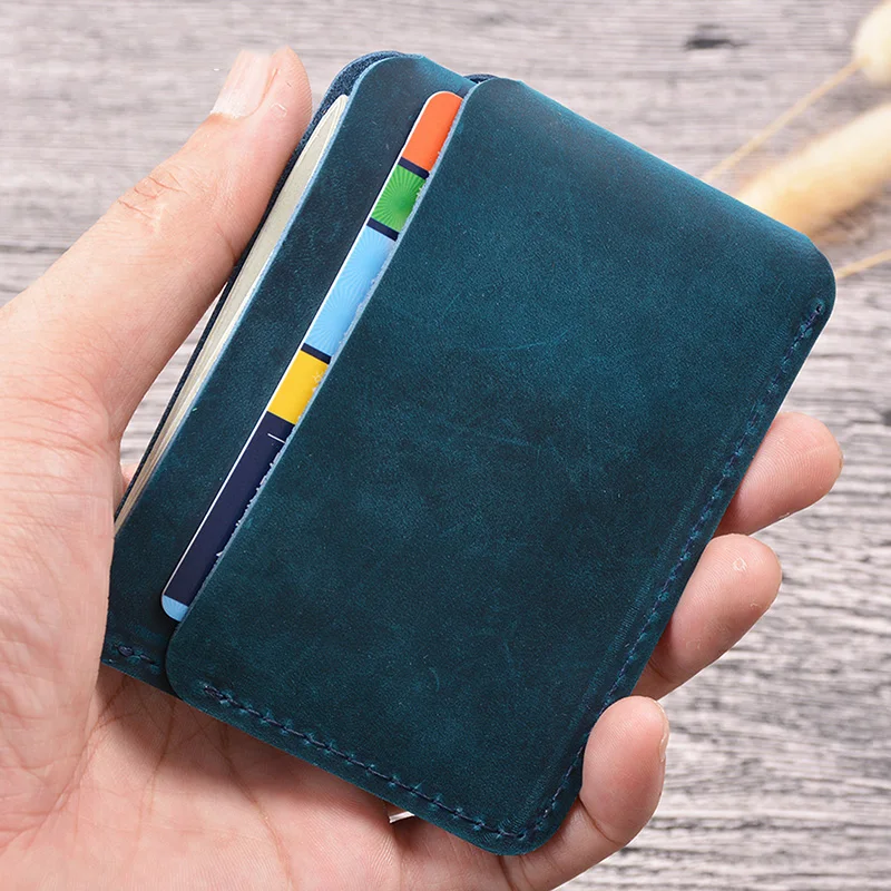 Мужской кошелек для кредитных карт ручной работы, тонкий Винтажный чехол из натуральной кожи Крейзи Хорс