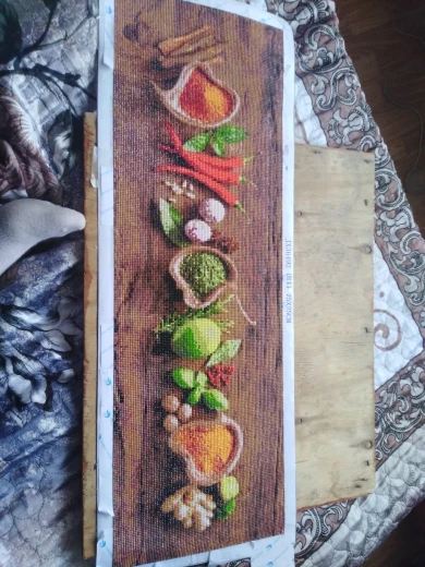 Супер яркие цвета, дошло всё аккуратно, без заломов, холст был накручен на валик из пенопласта, в мягком пакете все пришло, в комплекте ручка, воск, миски для страз, холст и сами пакетики со стразами,. Холст с полями по 2см где то по всему периметру. Только начала собирать, дополню фото после сборки