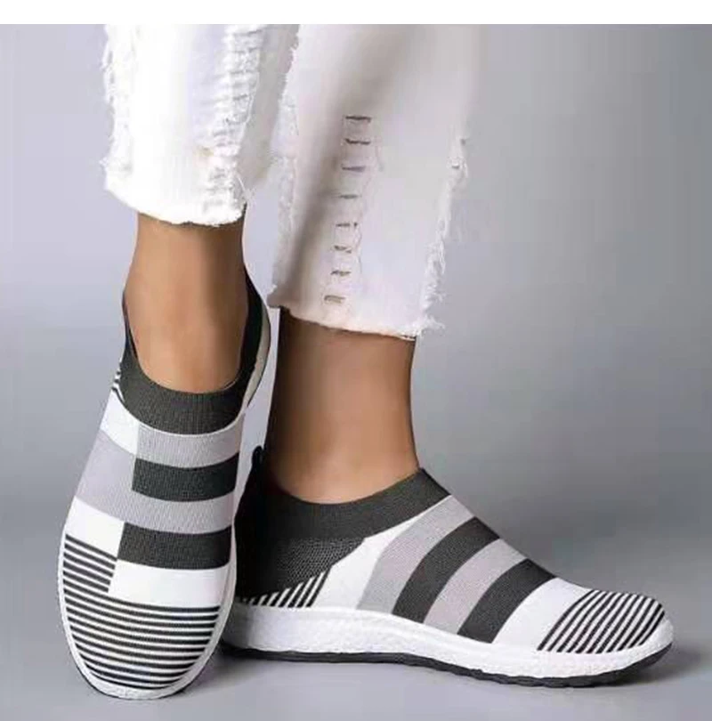 Женская обувь; Кроссовки; Женская Вулканизированная обувь; Вязаные женские кроссовки на плоской подошве; Сетчатые женские кроссовки без застежки; Zapatillas Mujer; Повседневная обувь; 2020
