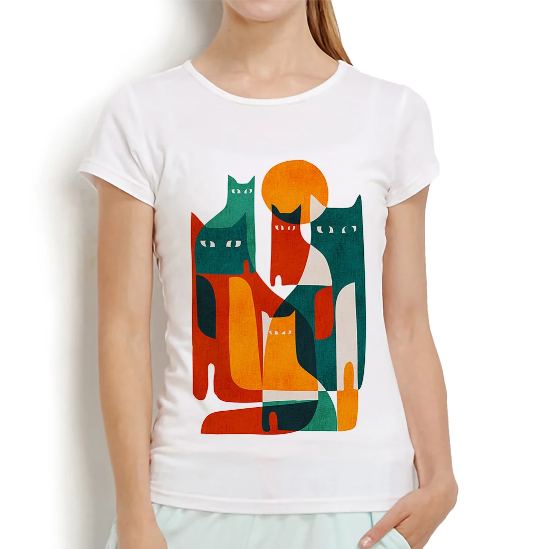 Женская Винтажная Футболка миди century, белая Повседневная футболка с причудливым котом в стиле ретро, лето 2019