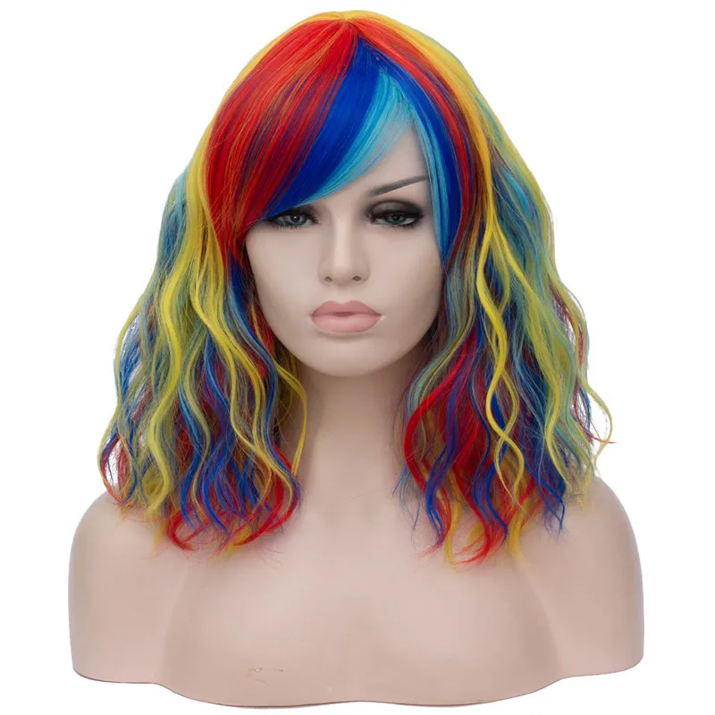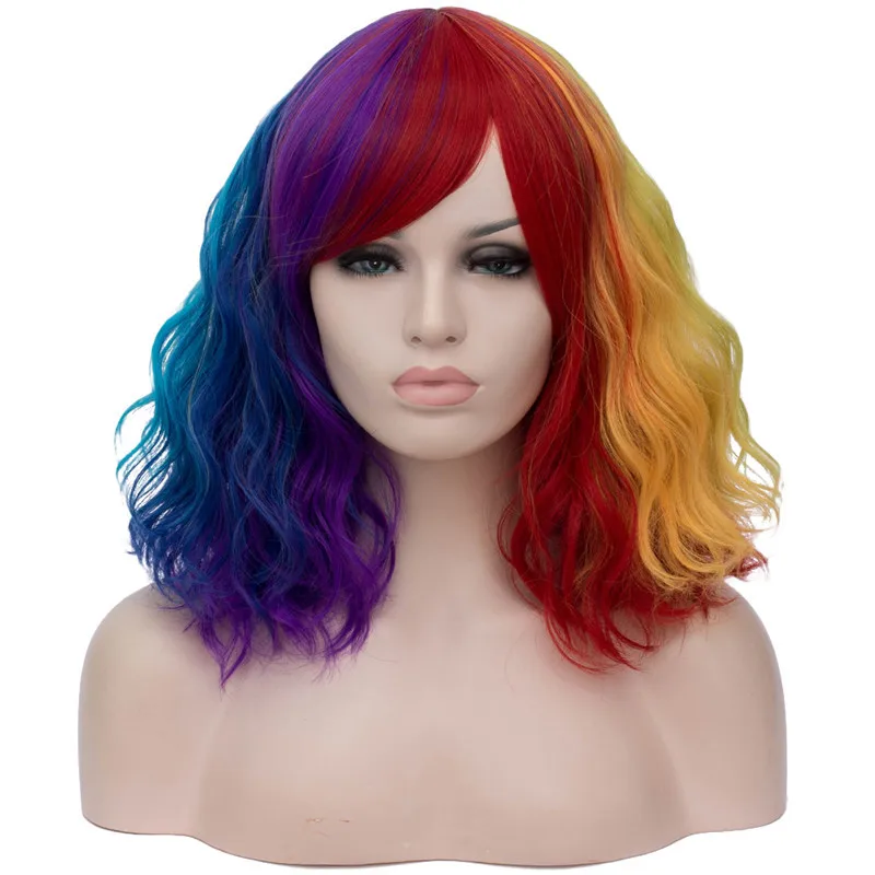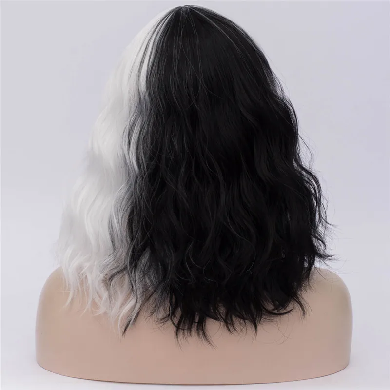 Парики MSIWIGS для женщин для косплея, черно-белые Волнистые Короткие синтетические парики, фиолетовые радужные термостойкие