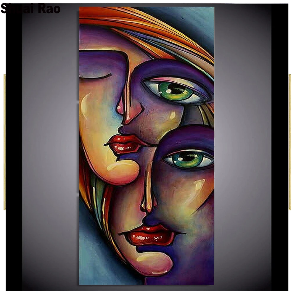 Большой размер полная круглая сверла Emeroidery картина со стразами Вышивка крестом Алмазная мозаика для женщин лицо красочное абстрактное искусство