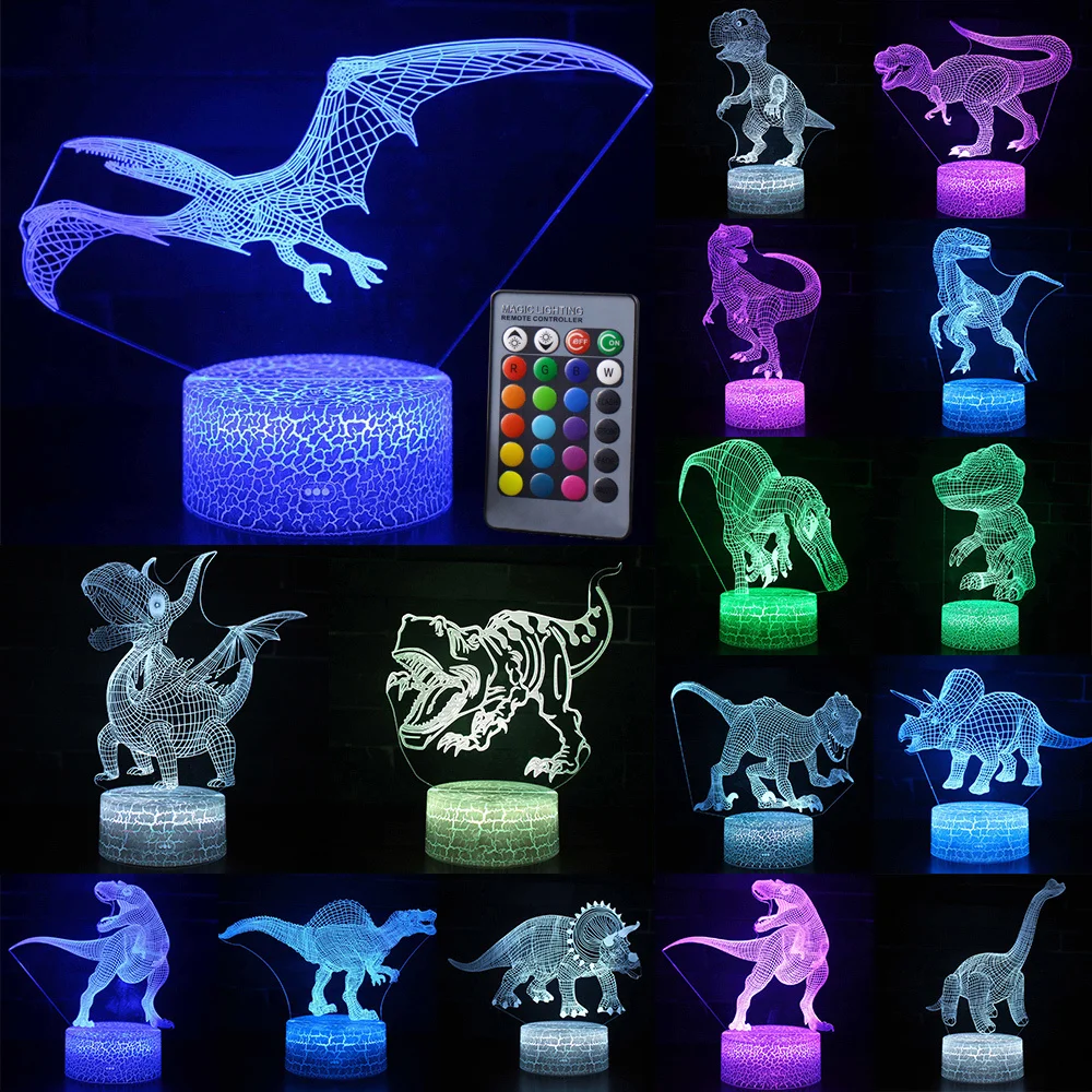 Сенсорный контроллер с ПДУ для светодиодной ленты Управление 3D светодиодный Ночной светильник серии динозавров 7 / 16 Изменение цвета светодиодные настольные лампы, детский подарок на Рождество, украшение дома
