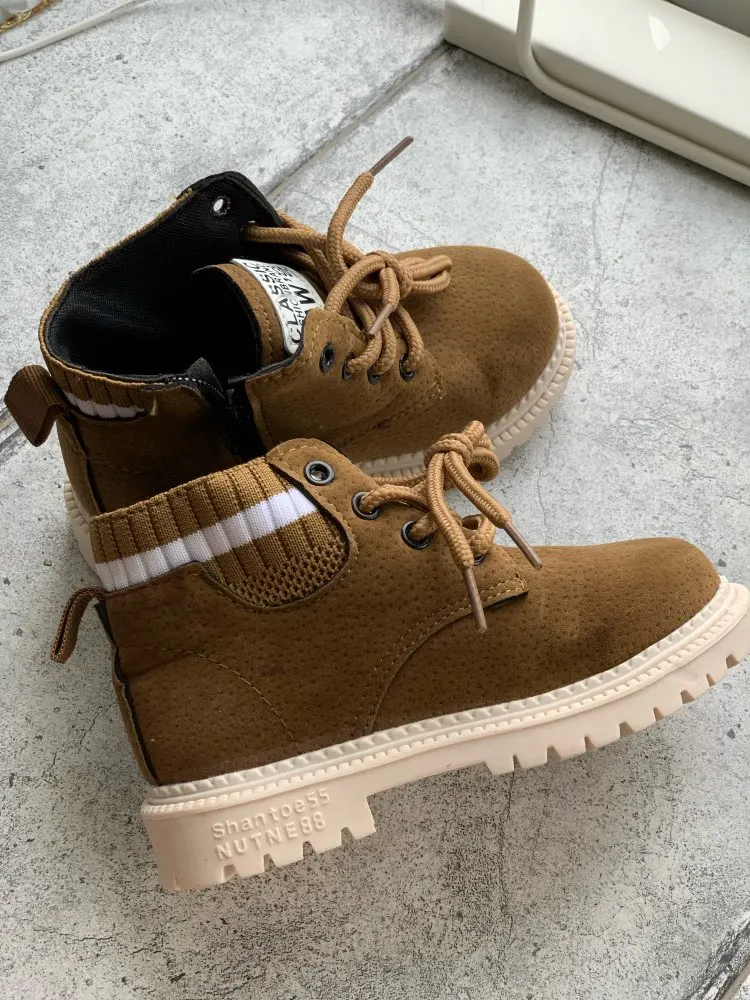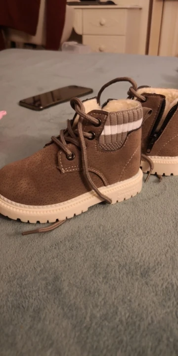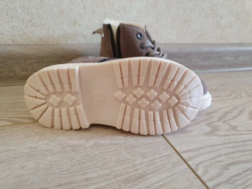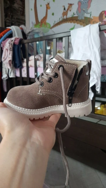Ботиночки очень даже не плохие, одно НО! Прилипает мусор на них, но для нас это не критично, все равно на улице бегать. На холодную зиму не пойдёт, максимум до минус 10. По размеру большеватые, см на два (носим 24).