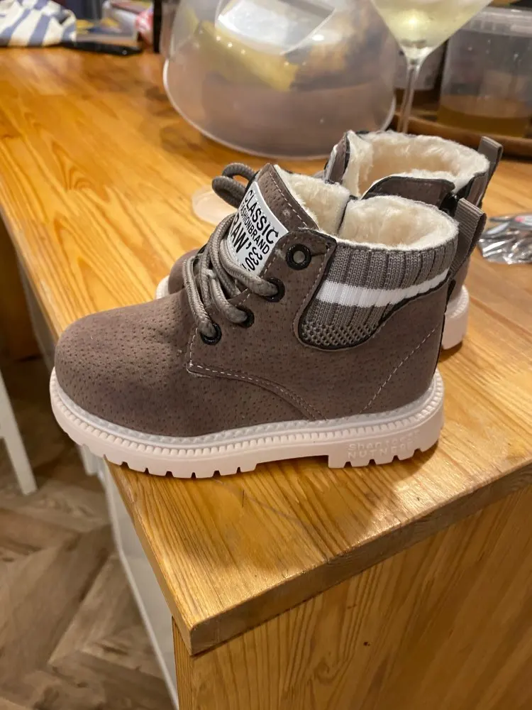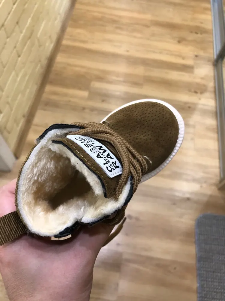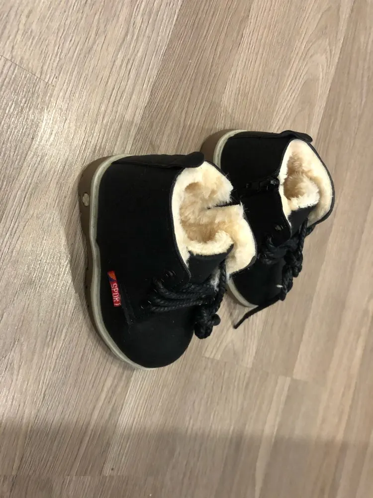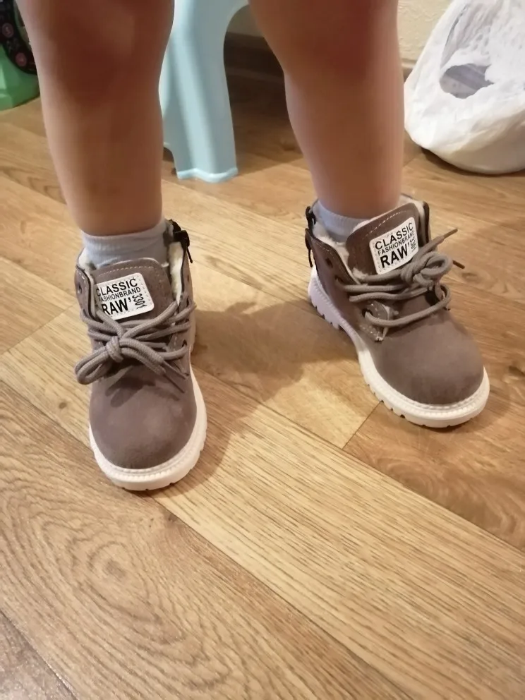 Замечательные первые ходунки для зимы для мальчиков. Изготовлены из легкой ткани с эластичной подошвой. Удобный и милый. Внутри мягкий искусственный мех белого цвета. Размер подходит для идеального сына; Обычно размер 23; wzielem 24; Идеально подходит. Хорошее качество. Рекомендую всем. Быстрая доставка 2 недели.