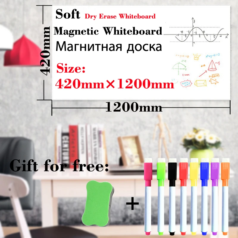 Магнитная доска для обоев 420*1200 мм, стенка холодильника, наклейки, доска для рисования для детей, школьные доски для сообщений, белые доски для сухого стирания
