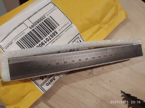 Линейка хорошая. В работе пока не пробовал. Металл достаточно тонкий, поэтому при транспортировке немного изогнулась. Продавцу следует подумать над усилением упаковки
