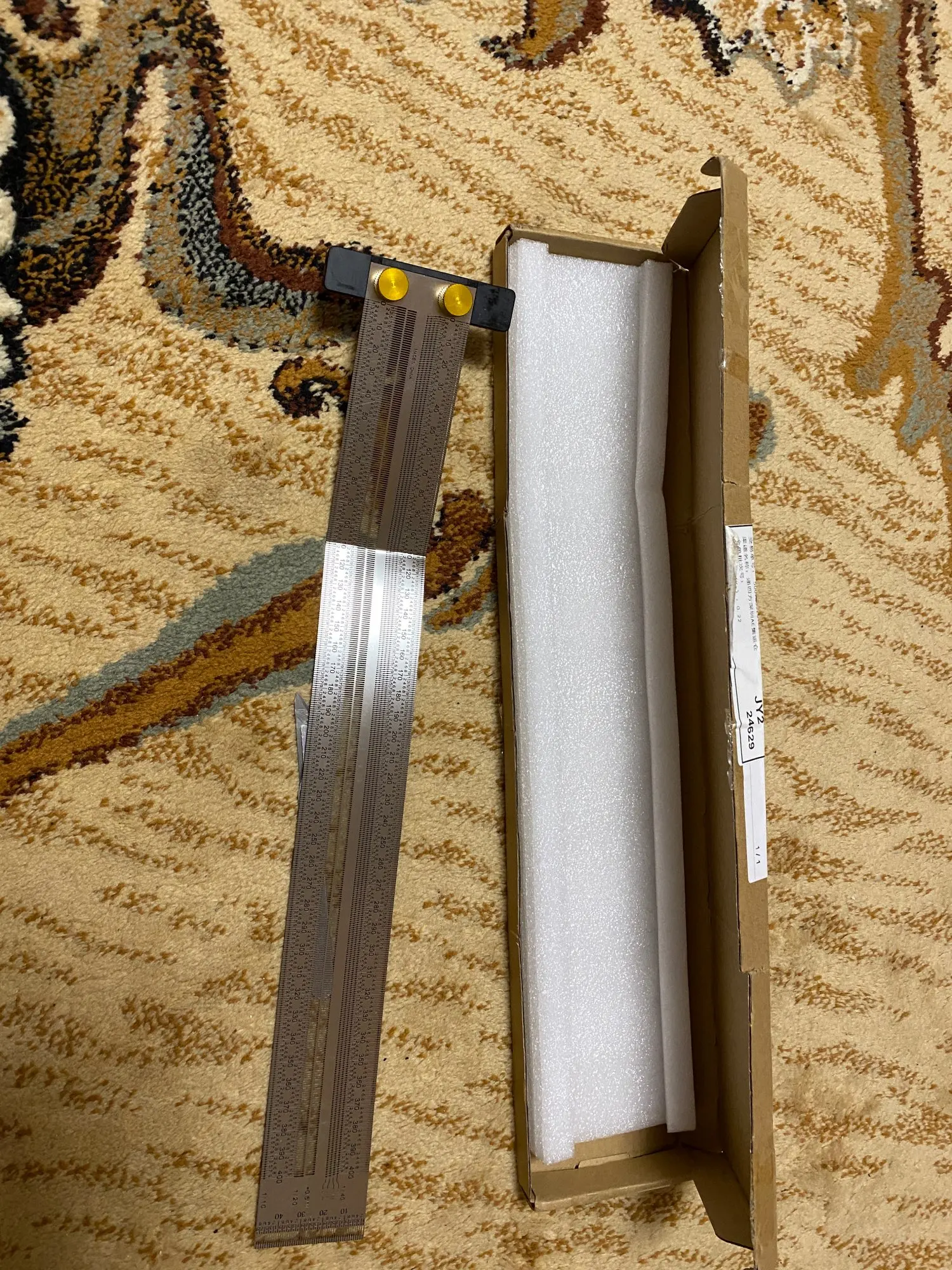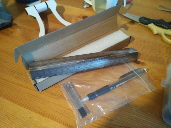 Хорошая линейка. Выглядит очень точно. Он был упакован в картонную коробку с наполнением из пенополиуретана. Доставка занимает около 5 недель.