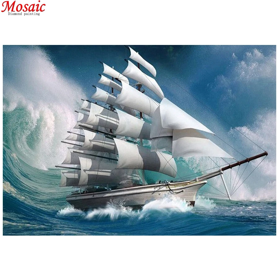 Алмазная живопись 5d море Новые квадратные камни Алмазная Вышивка Полный макет парусник Алмазная мозаика вышивка крестиком рукоделие