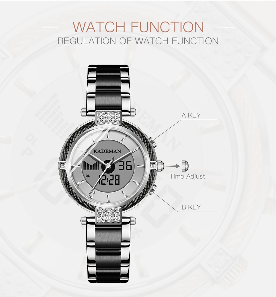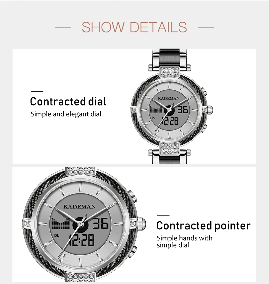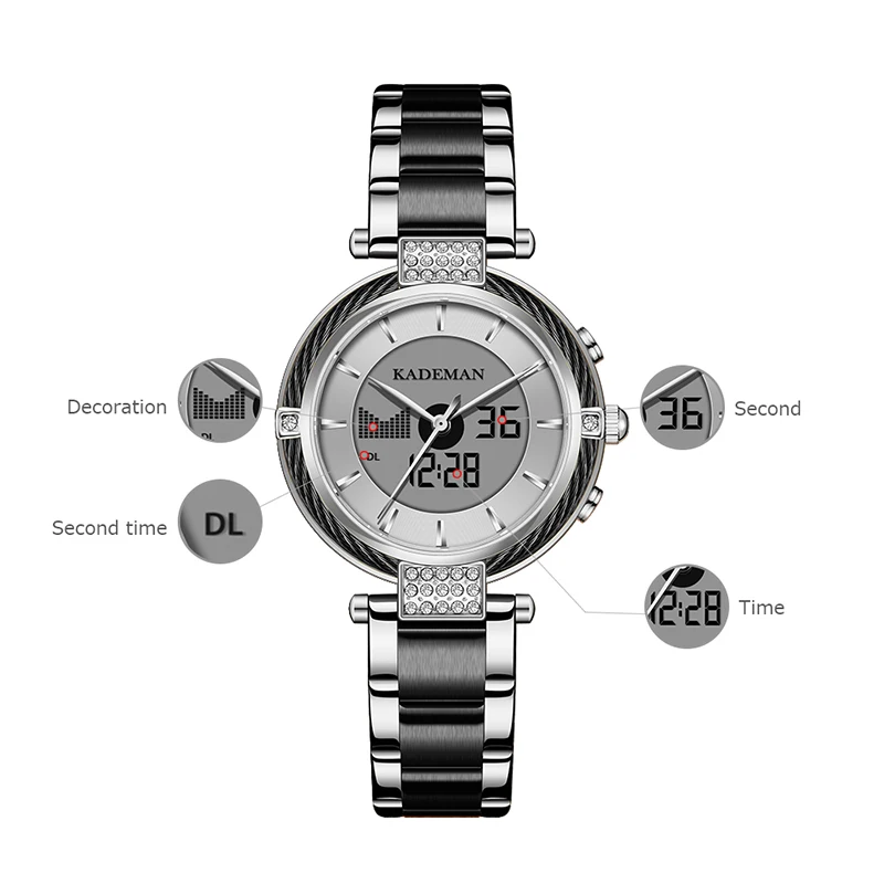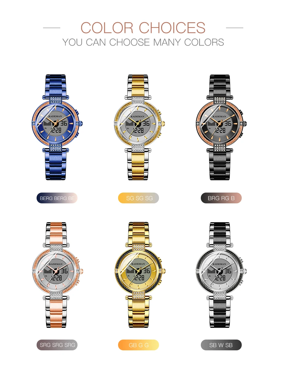 Бренд: KADEMAN Серия: K9080 Механизм: кварцевый и цифровой двойной механизм Дизайн: уникальный; Двойной дисплей Стиль: роскошь; Мода; Вечервечерние платье; Деловой; Спортивный Посылка: брендовая коробка, роскошная подарочная коробка Основная особенность -100% оригинальный бренд высшего качества -Водонепроницаемость 3ATM/30M -Качественный чехол из нержавеющей стали